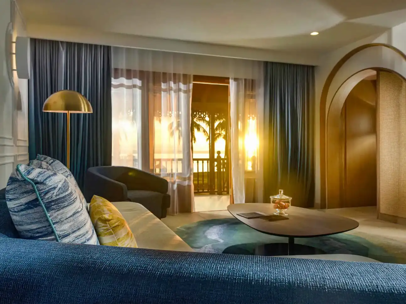 Elle dispose d’un salon séparé, lumineux, avec un accès direct à un balcon ou une terrasse aménagée. Cet espace est équipé d’un canapé, de fauteuils, d’un coin repas, d’un espace télévision et d’un minibar personnalisable (avec supplément). Une machine Nespresso est également à disposition.