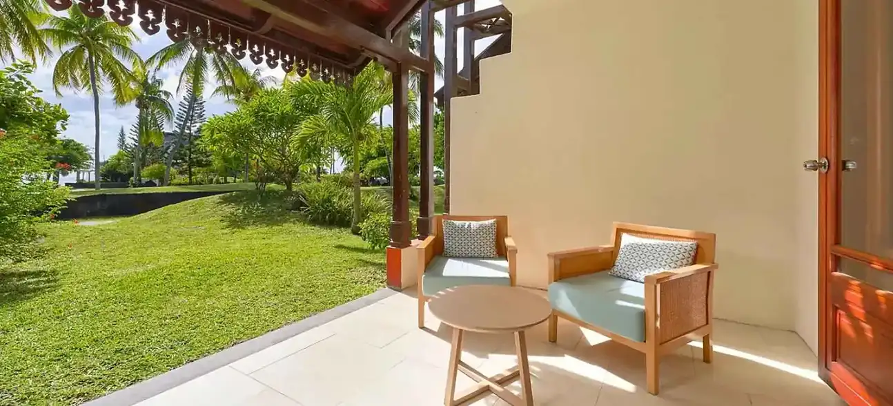 - Suite impérial vue sur mer : Cette suite au confort ultime vous accueille dans un espace généreux de 125 m² avec une vue imprenable sur la mer côté coucher de soleil et une terrasse partiellement ombragée offrant un accès direct à la plage. Elle reçoit jusqu’à 2 adultes et 2 enfants et propose un espace repas extérieur ainsi qu’une élégante balançoire pour des moments de détente face à l’horizon.