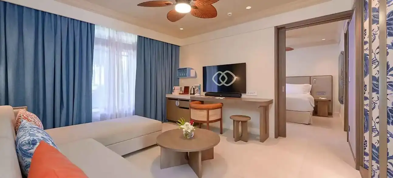 - Chambre magnifique : Offrant une vue exceptionnelle sur la mer et la piscine Flamboyant réservée aux adultes, cette chambre haut de gamme de 50 m² pouvant accueillir 2 adultes allie confort et raffinement.