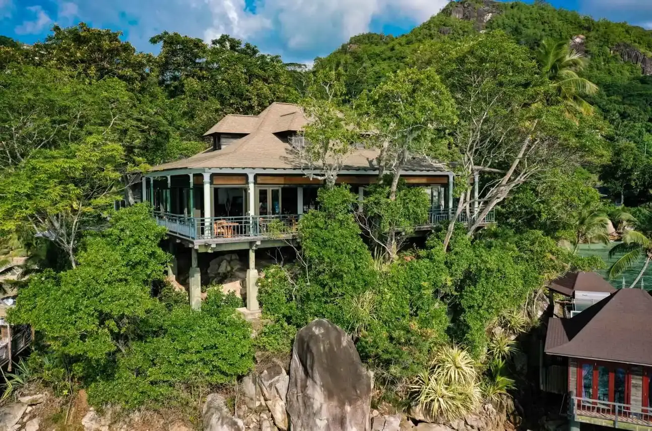 Semi-ouvert, niché au cœur de la verdure et disposant d’une vue spectaculaire sur l’océan Indien Le Mahé, restaurant principal (plats à la carte et sous forme de buffet), propose au petit déjeuner et dîner une cuisine créole confectionnée à base de produits frais et locaux, mais aussi des saveurs orientale, asiatique, occidentale, italienne, indienne et bien sûr des spécialités de la mer. Fréquentes soirées à thème pour le dîner. Le WAVE, restaurant à la carte en plein air, propose une cuisine gastronomique aux influences méditerranéennes et créoles pour le dîner. Il est également possible de prévoir un repas dans votre villa en toute intimité ou de vivre des expériences culinaires privées dans des endroits secrets du domaine.