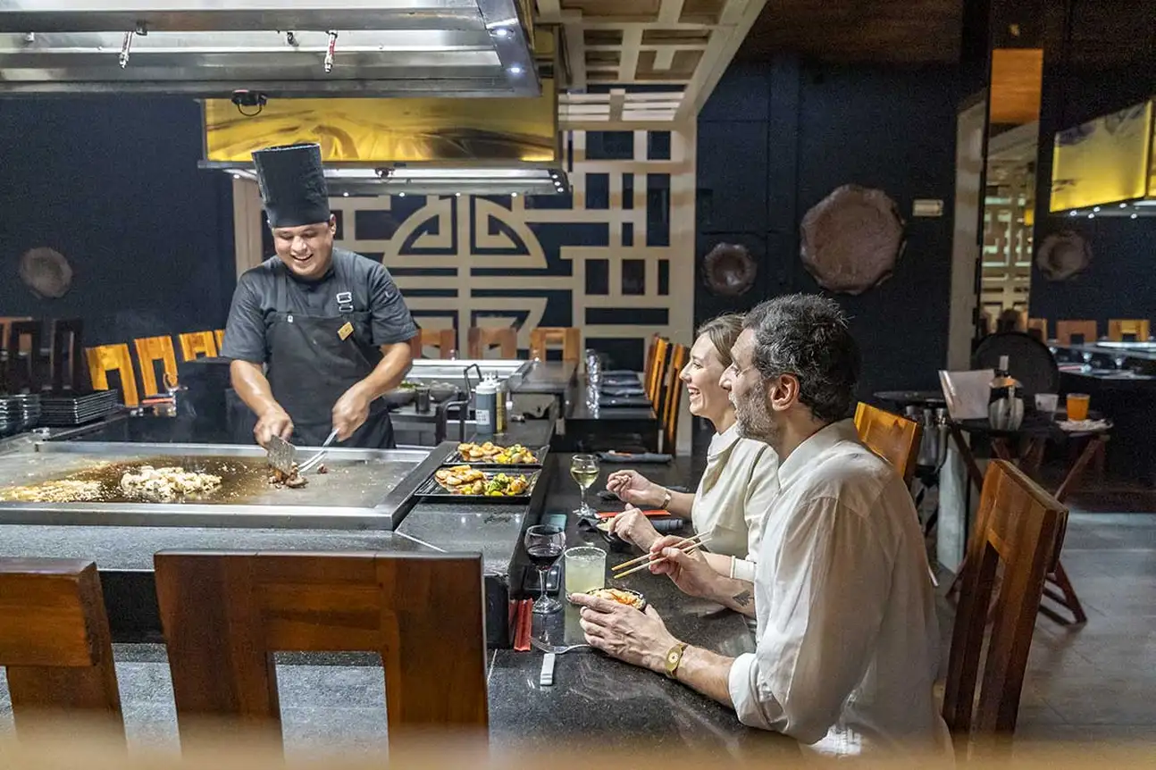 • 4 restaurants à la carte pour les dîners, sur réservation : japonais « El Templo », terre & mer « Los Lirios », brésilien « Fogo de Brazil » et méditerranéen « Riviera ».