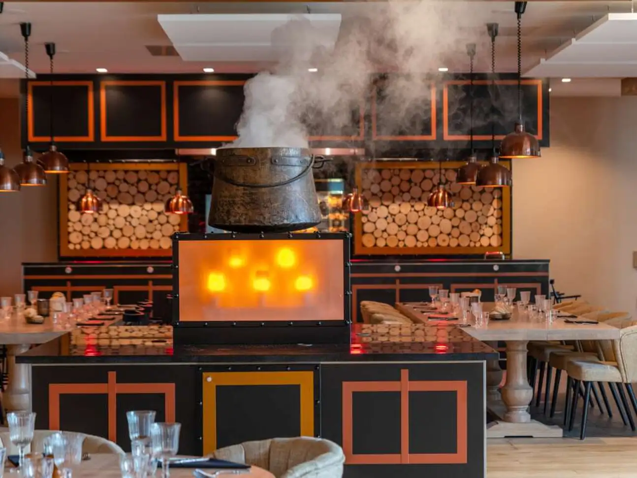 Laissez-vous porter par les arômes d’un délicieux fumet de viandes rôties. Comme par magie, ce charme invisible vous mène jusqu’aux cuisines du château où un succulent dîner vous attend dans notre rôtisserie.