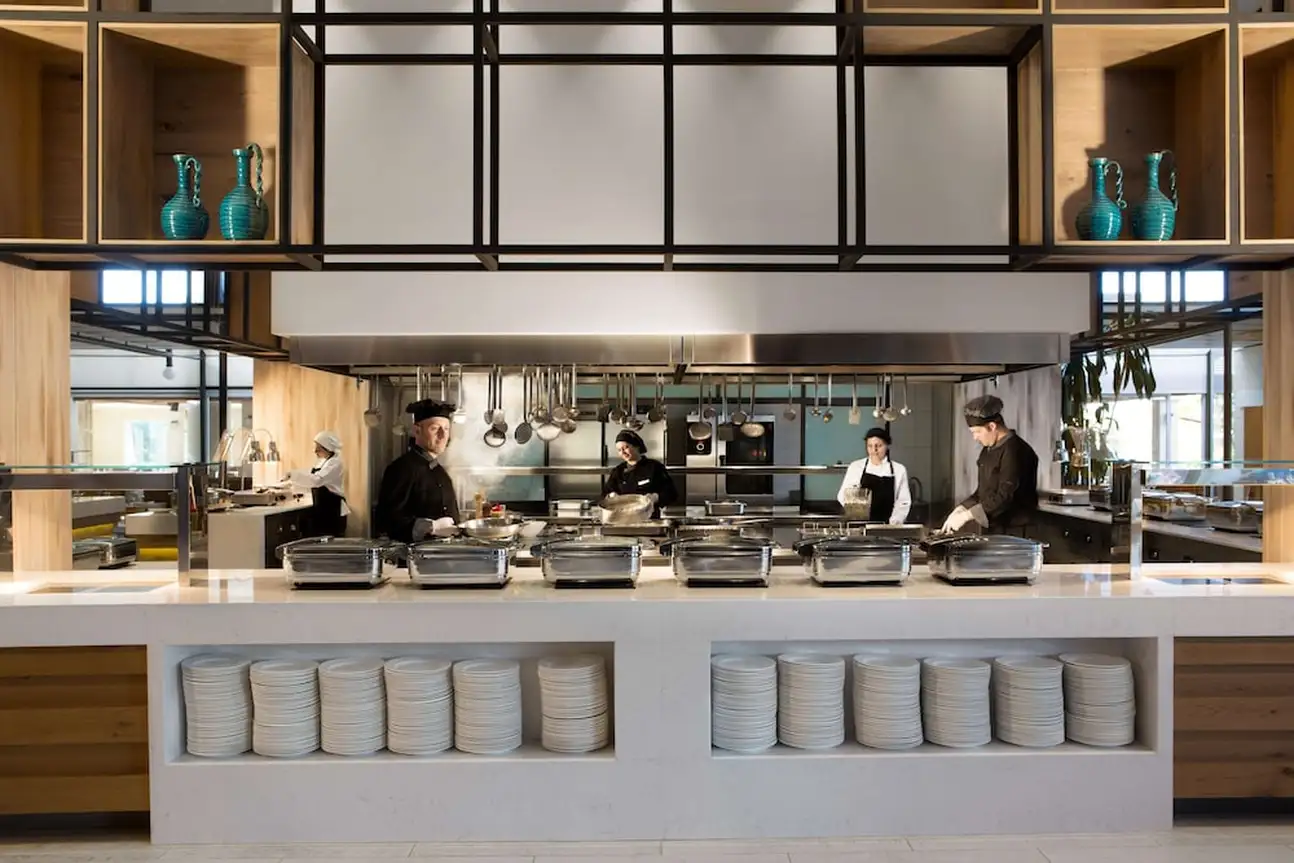 Vous avez le choix entre 8 restaurants et bars. Plutôt fine gueule ou street food? A l'Agapi Beach Resort, vous trouverez les deux autour des spécialités grecques ! Gourmande, la Taverna Akrogiali vous fera goûter ses poissons grillés et viandes en sauce. Miam ! Sympa aussi, le style typique entre pierres locales, fenêtres peintes en bleu et pergola de bois. Dans un autre genre, sur une chaise de métal noir au Taka Taka, prenez votre plateau de souvlaki, tiropita, frites...