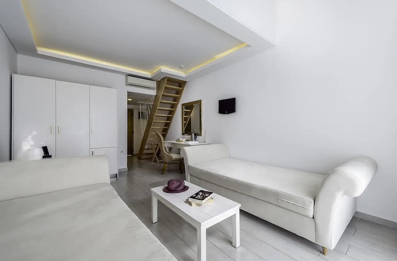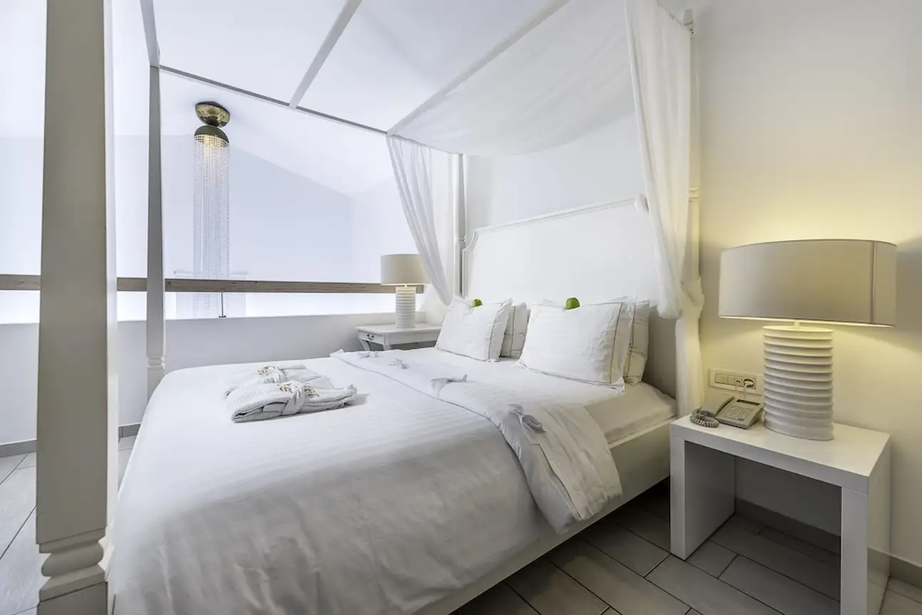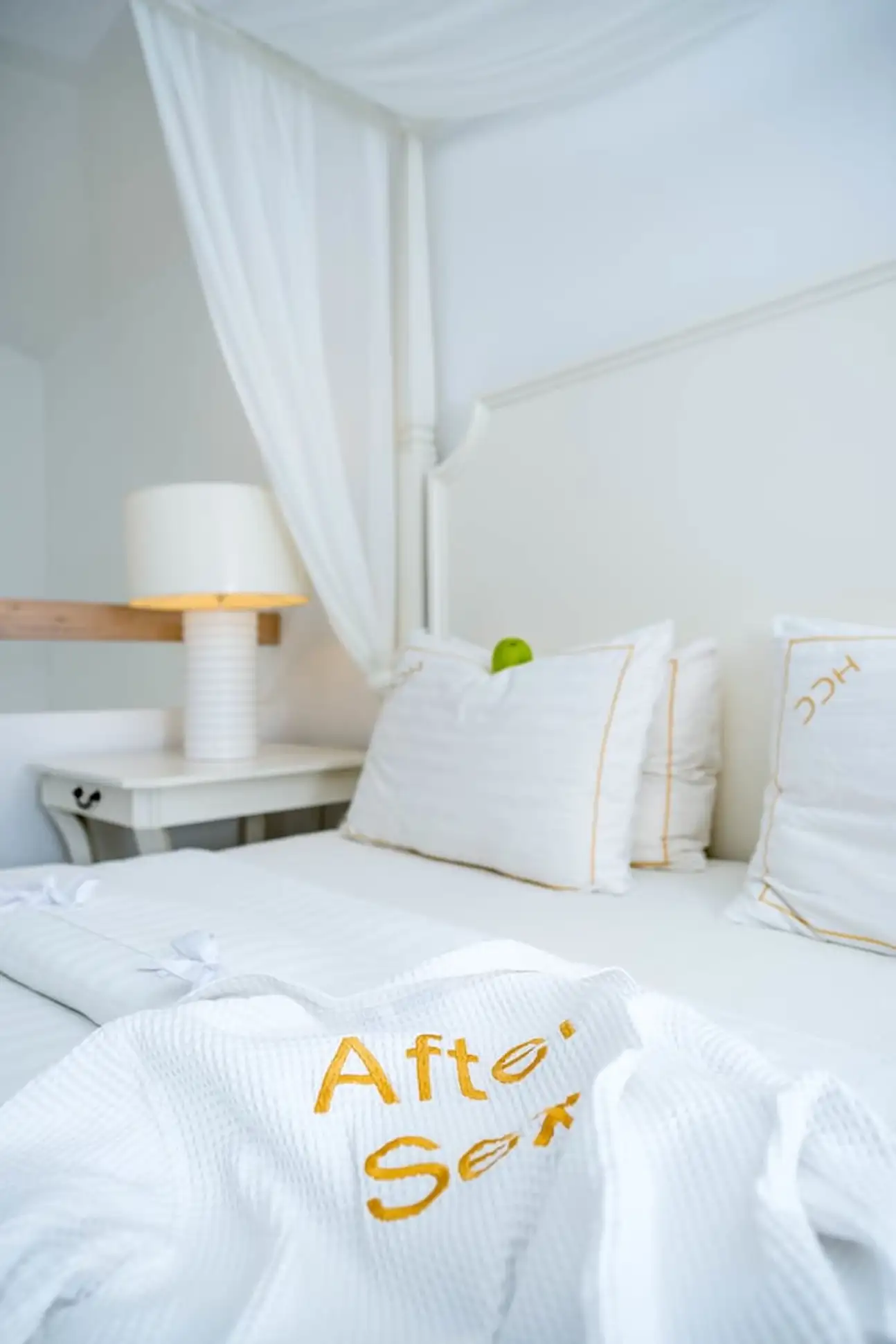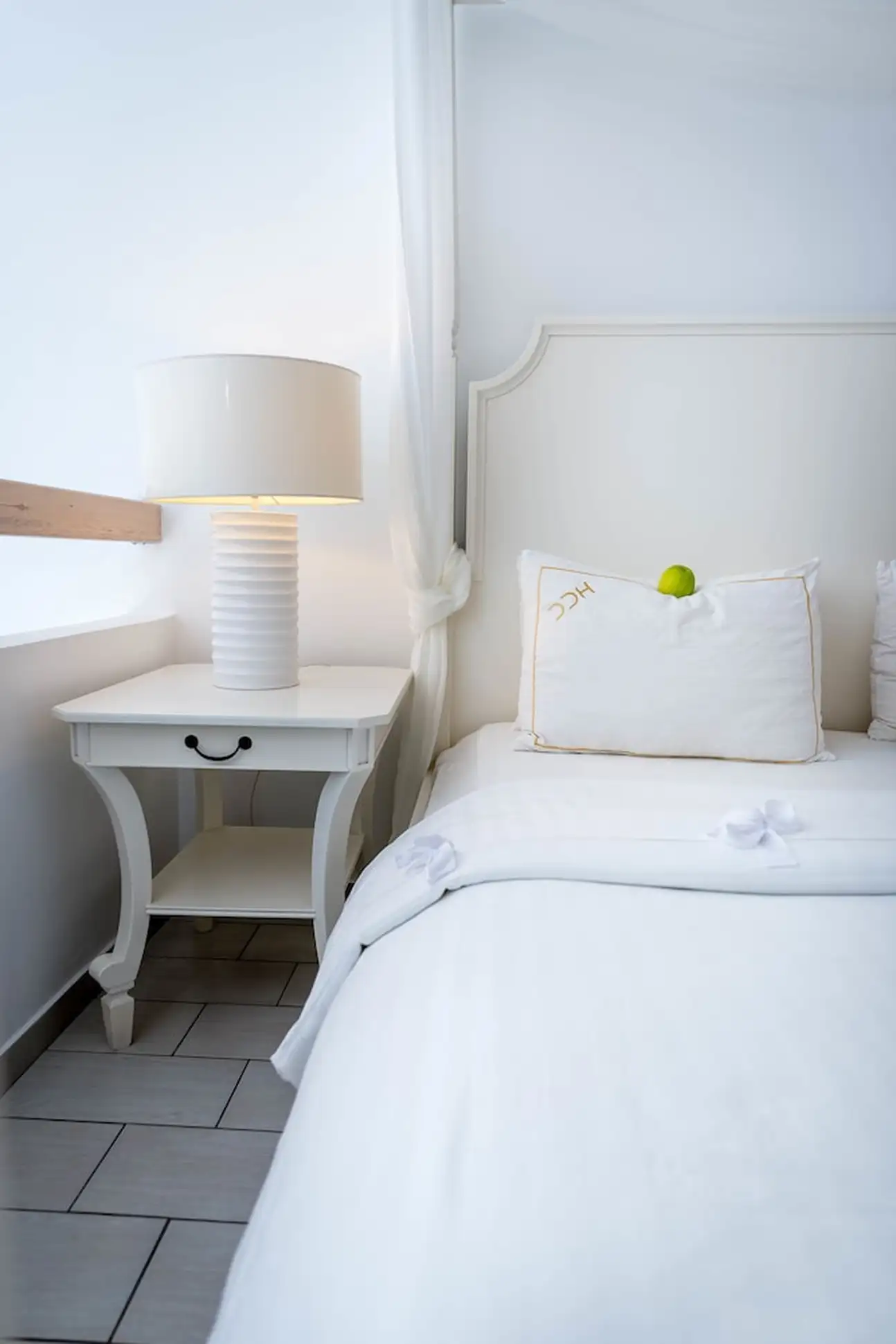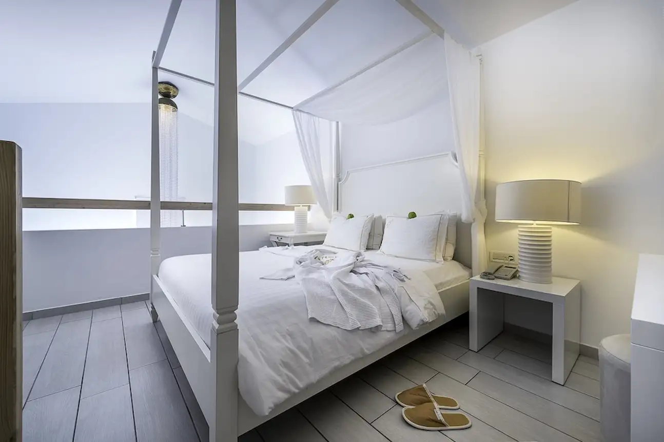 Votre resort totalise 110 chambres, allant de la Double Room de 30 m2 à la Diamond Suite with Private Pool de 60 m2, en passant par la Superior Deluxe de 38 m2. Toutes profitent d'espaces extérieurs meublés, avec vue mer ou piscine. On aime la Swim up, avec sa terrasse privée de 20 m2 et son accès direct à la piscine. C'est moderne et blanc de blanc ! Seul le doré s'invite sur les miroirs, les luminaires et les murs des salles de bain. Le mobilier est minimaliste. On adore l'œuf en balançoire en terrasse de la suite !
