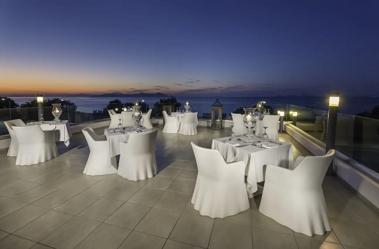 Vous prendrez votre petit-déjeuner à l'Emerald, face à la piscine. Le restaurant s'ouvre aussi en soirée pour des dîners à thème, présentés sous forme de buffets. Au Peruzzi, place à la gastronomie ! Produits locaux, combinaisons audacieuses, cuisine sensorielle, tout concourt à vous faire vivre une expérience singulière. La salade grecque est revisitée. Le thon en croûte de poivre et herbes est accompagné d'une raviole de betterave farcie au raifort. Le loup de mer est servi dans une émulsion d'ouzo, avec des pois chiches. Excellent ! Le cadre est tout aussi singulier : marbre, bois, tapis persans, chaises en bois de cerf dignes d'un conte, bougies blanches et porcelaine fine signent une ambiance sophistiquée.