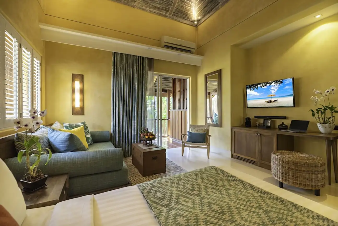 Les chambres sont colorées, lumineuses et s'ouvrent sur un patio ou une terrasse privée. L'hôtel a eu la bonne idée d'installer des baignoires traditionnelles thaïlandaises entourées de galets polis. Le petit plus : faire le choix de son oreiller parmi un menu spécial "nuits douces".