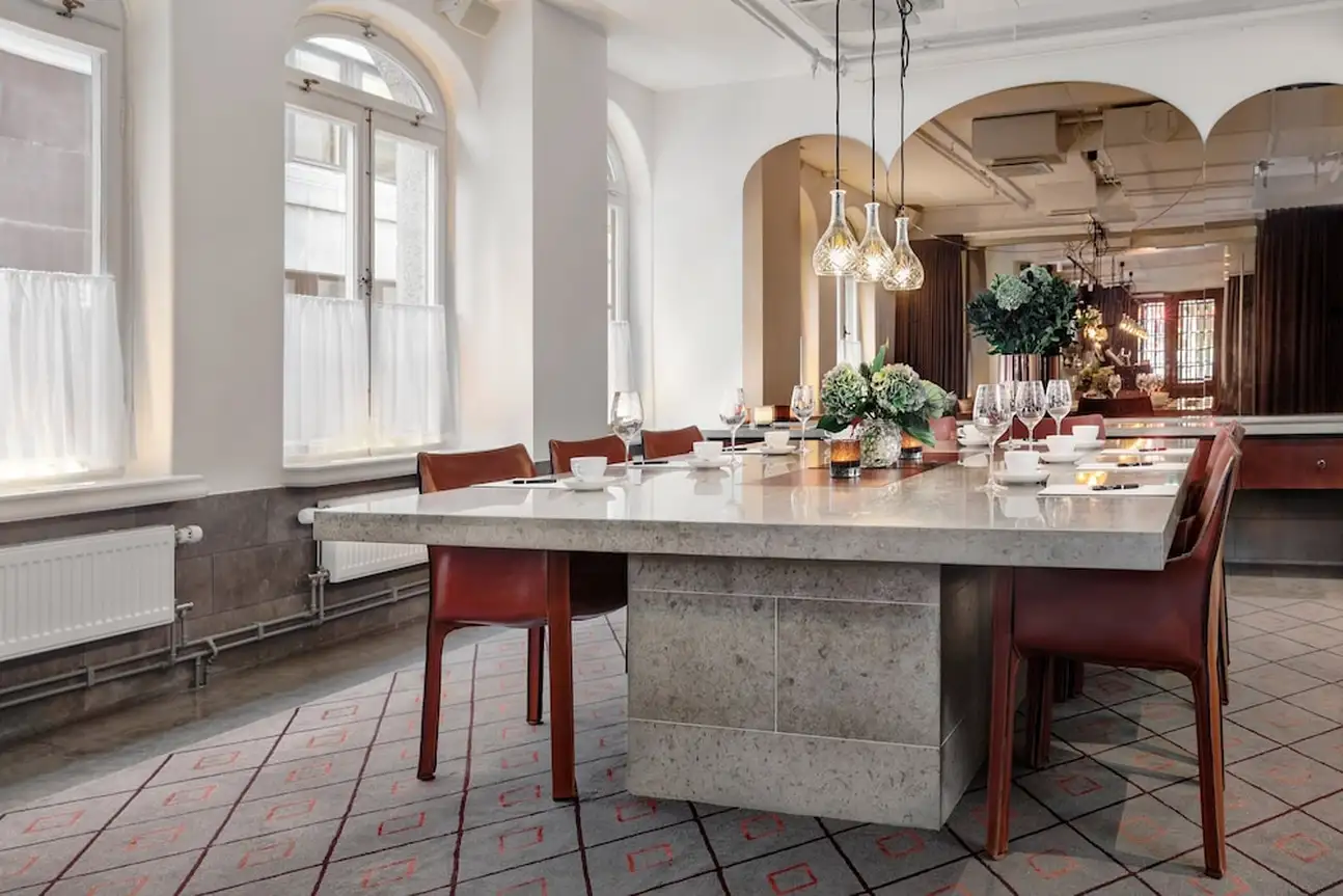 Ancienne école Art Nouveau, magnifiée par un design suédois moderne, sobre et osé à la fois. Vous craquerez pour leur cuisine généreuse venant tout droit d'Italie.