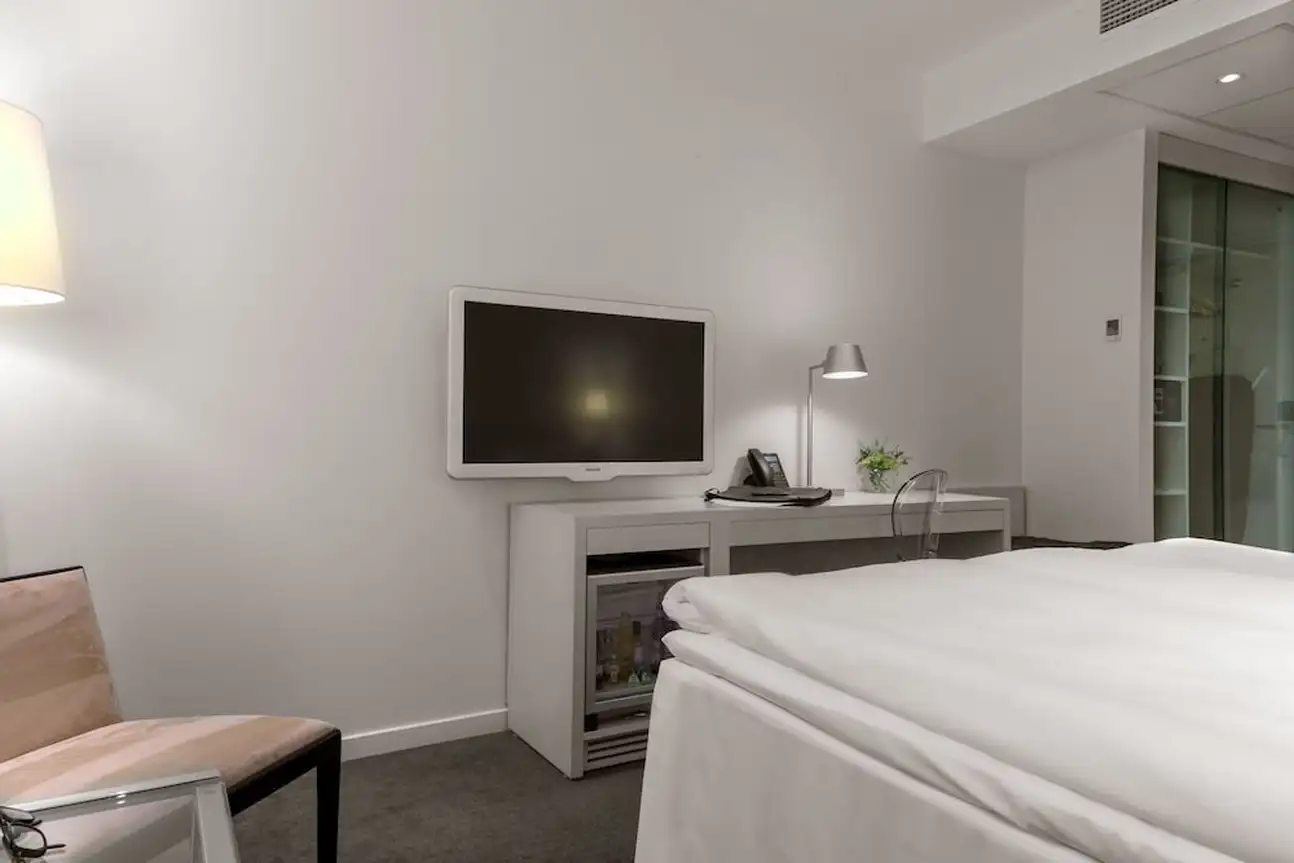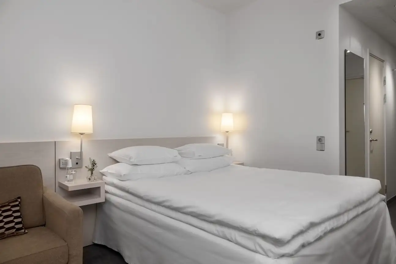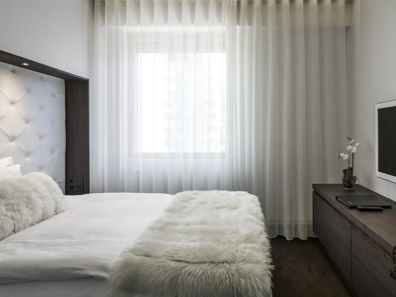 Ne vous laissez pas tromper par l'austère façade cubique du Riverton : elle abrite un décor tout en finesse, alliant un mobilier au design intemporel à un espace simple et chaleureux. Une réception tout de marbre vêtue vous accueille, se reflétant dans les vagues dorées du comptoir. Toujours dans une balance de chaud et froid, des touches florales et décoratives trouvent ici un terrain d'expression privilégié. Viennent ensuite de beaux espaces peuplés de grands canapés en cuir et de grands luminaires en forme de boules. Les 210 chambres et suites et les 6 appartements suivent ce même esprit de luxe minimaliste : ils sont conçus pour offrir un confort stylé à des voyageurs en quête d'une expérience totale, au cœur de Göteborg. Car le Riverton vous propose bien plus qu'une chambre. Son restaurant et bar du dernier étage mérite franchement un détour, au même titre que les meilleures adresses en ville ! Pour sa vue panoramique sur la rivière Gothia, of course, mais aussi pour son excellent menu mettant en valeur les produits locaux, notamment les fameux fruits de mer de l'archipel. Quant au spa Serenity, c'est juste un pur bijou. Vous vous délecterez de ses somptueux bassins projetant leurs lumières bleutées sur les voûtes ! Un spa aux allures à la fois modernes et traditionnelles.