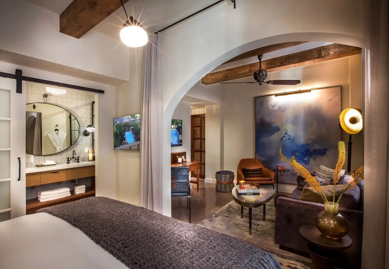 Au Figueroa, chaque chambre raconte une histoire différente. Si les ambiances et les couleurs sont très éclectiques, on retrouve néanmoins le même mélange d’influence hispanique, d’œuvres d’art et de touches résolument modernes. L’aménagement des salles de bains est particulièrement soigné.