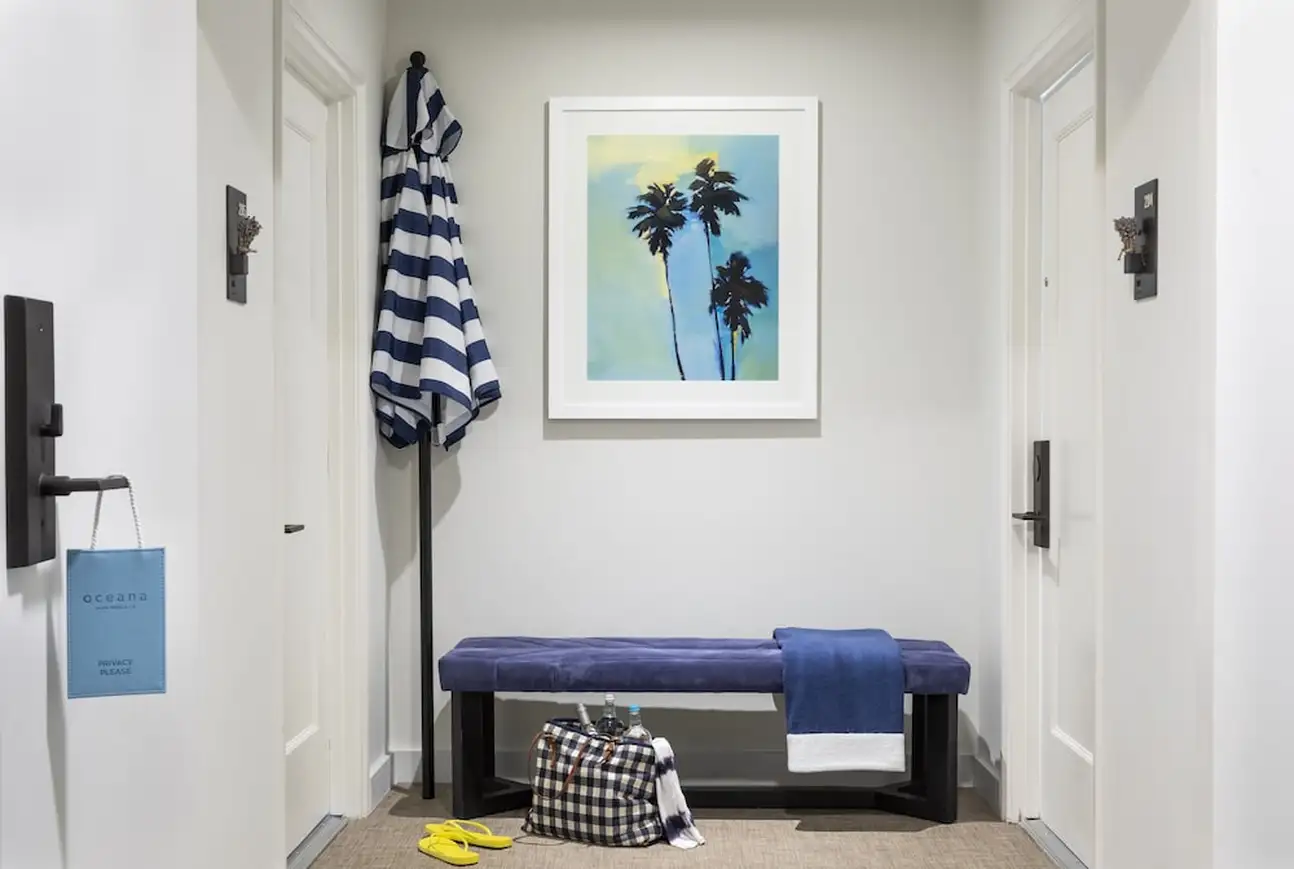 Vous avez envie d’un séjour relaxant au bord du Pacifique ? Arrêtez tout ! On a trouvé la maison de vos rêves. Nichée dans un coin discret de Santa Monica, l’Oceana est une oasis raffinée avec accès direct à la plage. L’hôtel vient d’être rénové et le résultat est absolument superbe. Dès l’arrivée, la façade végétalisée du bâtiment et l’élégance des jardins donnent le ton. Oliviers et palmiers encadrent une vue imprenable sur l’océan. Pas de doute, vous entrez dans un havre de paix. A l’image de la cour intérieure, mélange d’élégance et de luxuriance avec ses immenses jardinières. Tout autour de la piscine, transats surdimensionnés, coussins moelleux et canapés vous invitent au repos. A peine êtes-vous installé que le butler s’enquiert de vos envies. Une serviette ? Une bouteille d’eau ? Réparties tout autour de la cour, les chambres sont inondées de lumière. Totalement redesignées dans un style seaside haut de gamme, elles mélangent une palette de couleurs douces dominée par le bleu et des touches high-tech. Un Ipad vous permet de régler à volonté thermostat et éclairage. Côté restauration, l’offre est impressionnante. Vous êtes amateur de sushis ? L’Oceana convie régulièrement les chefs des restaurants Nobu pour une expérience pop-up au Sunset Terrace. Vous craignez pour votre beach body ? Aucun souci ! Du cours de yoga au personal trainer en passant par la consultation avec un nutritionniste, l’Oceana a pensé à tout !