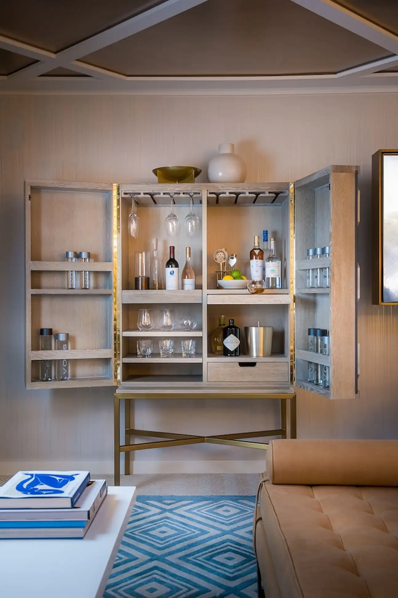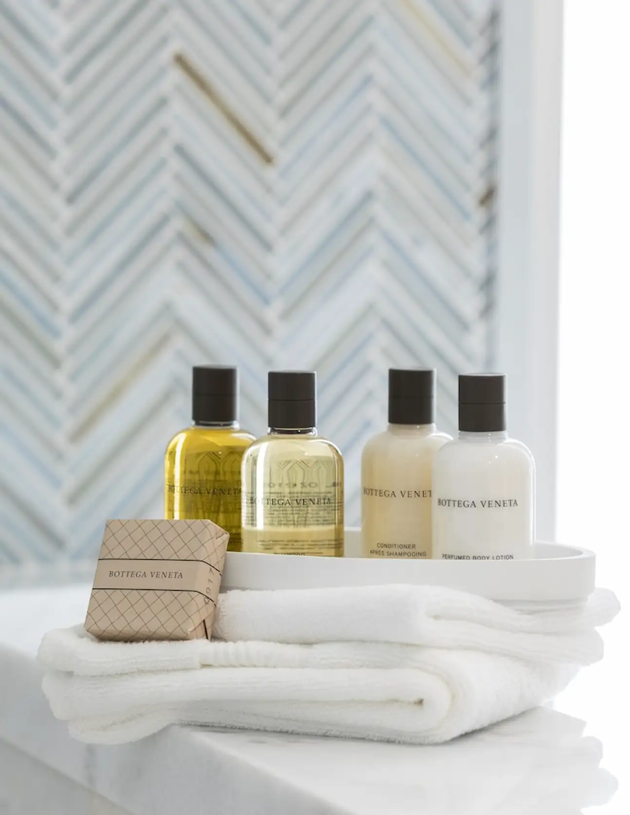 Les suites balnéaires ressemblent à de luxueux appartements privés en bord de mer. Petites terrasses aménagées avec vue sur l’océan. Literie Loro Piana, tapis tuftés, linge de lit Frette, produits de bain Bottega Veneta. Et le nec plus ultra de la technologie avec smart TV et système audio Bluetooth.