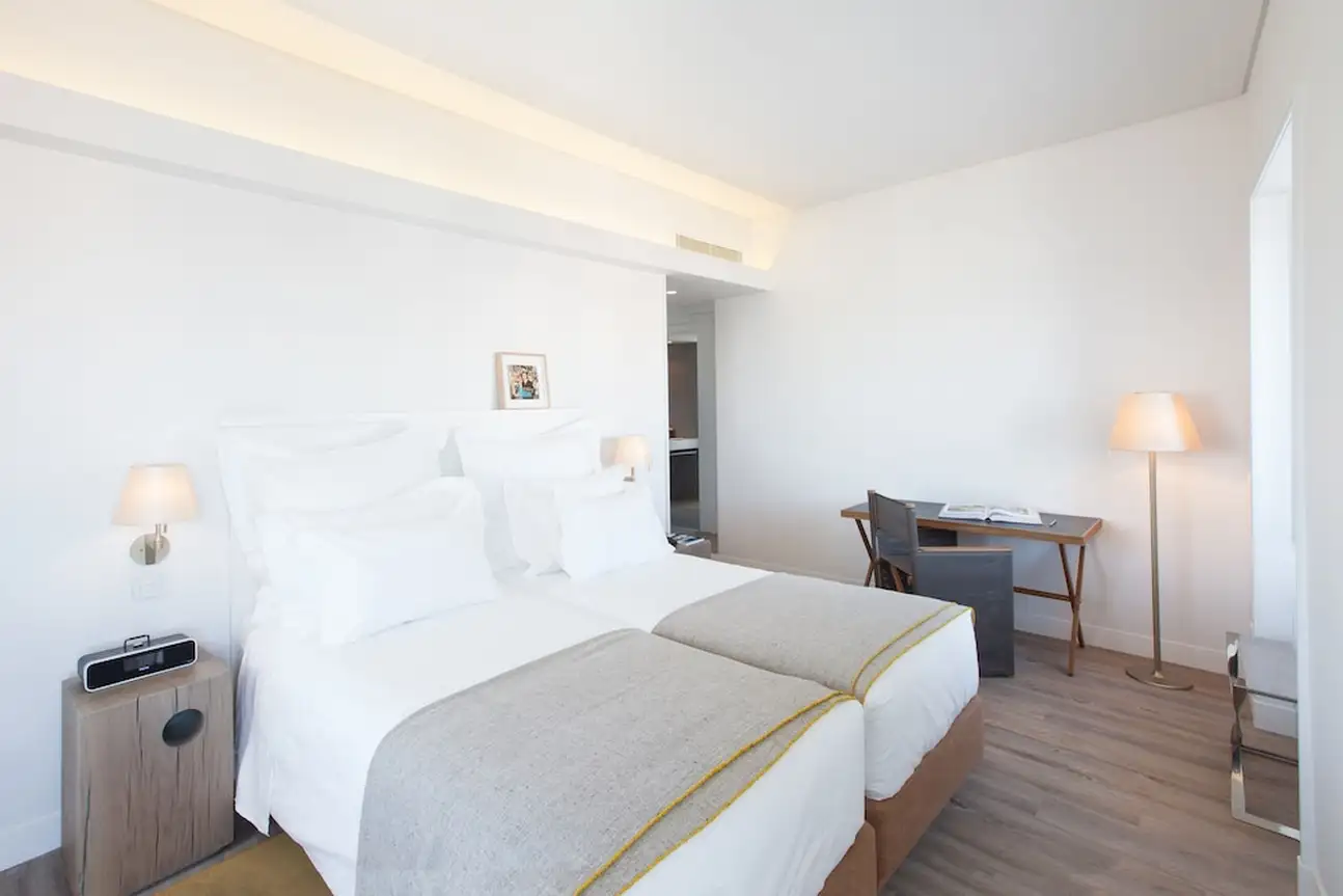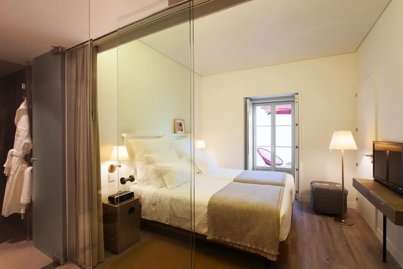 Déco épurée, mais pas glaciale. Des tonalités de blanc, beige, taupe et ocre font bon ménage. Certaines chambres sont mansardées, d'autres ont une terrasse : à vous de choisir ! Côté vues, là aussi, vous avez le choix : Lisbonne, le Tage, le patio de l'hôtel… Un bémol: les chambres du rez-de-chaussée sont sans vue intéressante, car trop au ras de la rue. Dans ce cas, n'hésitez pas à prendre de la hauteur : grimpez sur le rooftop !