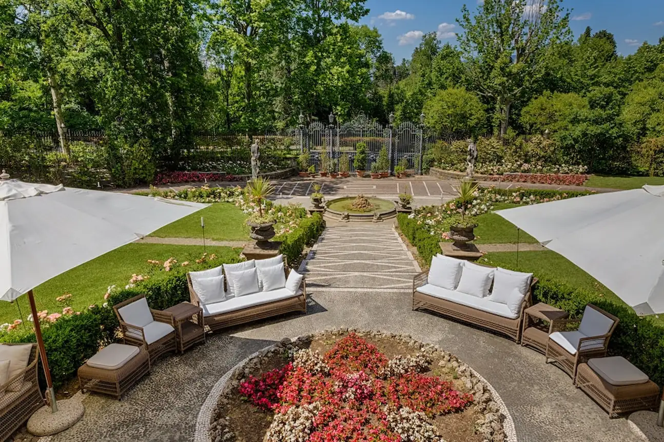 Vous voilà au-delà de Porta Romana, au sud de la vieille ville, la rue serpente jusque sur la colline. Un parc aux arbres majestueux et voilà qu’apparaît la villa, tout en noblesse XIXe. Erigée pour le baron Oppenheim, elle offre sa façade rose poudrée à chaque rayon du soleil. Des buissons taillés au cordeau, un perron, fermez les yeux : vous êtes l’impératrice Eugénie ou Claude Debussy, deux des illustres hôtes des lieux. Accueilli avec une certaine cérémonie, on vous mène à votre chambre. Au premier, l’étage noble et ses sublimes fresques, toutes originales. Pour le rose qu’affectionnait la veuve de Napoléon III, c’est au second que l’on vous conduira. Orientaliste dans l’âme, grimpez donc jusqu’au 3e. Tout n’est qu’antiquités et mobilier précieux. Dehors, des chênes séculaires, des ifs altiers et des rosiers délicats encadrent la piscine chauffée qui n’attend que vos gracieux plongeons. Mais pas à midi, quand, par beau temps, le déjeuner sera servi dans le jardin d’hiver. Furetez donc pour admirer la salle moresque, orientalisante en diable, la salle Blanche et sa monumentale cheminée en marbre de Carrare et surtout le Salon des Glaces, tellement baroque. Au coucher du soleil, passage obligé par la vaste terrasse : n’oubliez pas votre appareil photo, la vue sur Florence y est juste fabuleuse. Et après dîner, cherchez donc ce salon secret : murs lambrissés et velours rouge, le bar privé dissimule une collection de cigares à damner les amateurs !
