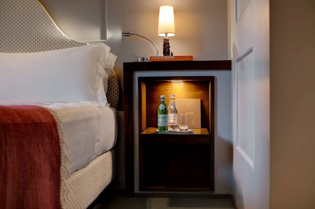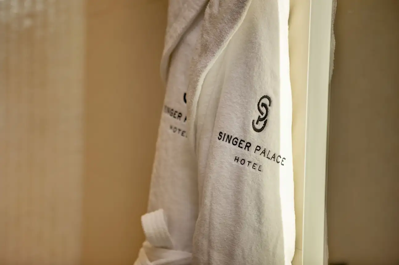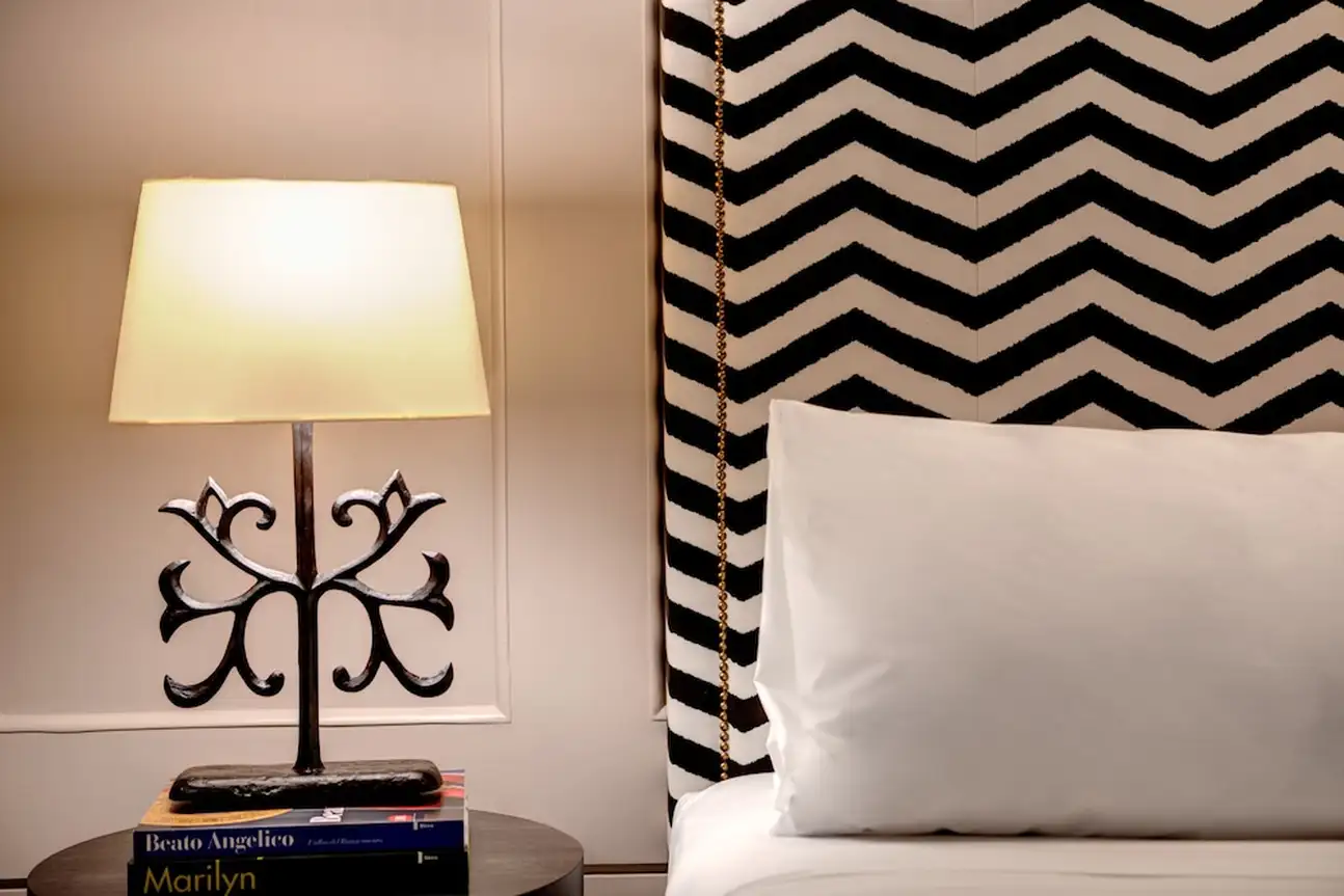Les chambres et suites du Singer Palace Hotel Roma sont aménagées avec du mobilier et des accessoires design. On y trouve des têtes de lit graphiques ou capitonnées. Dans certaines suites, des papiers peints effet matière ou brillant habillent les murs. Et les tissus d’ameublement sont en coton, velours et lin. Dans les salles de bains en marbre, les sols sont en résine et parfois décorés de mosaïques.
