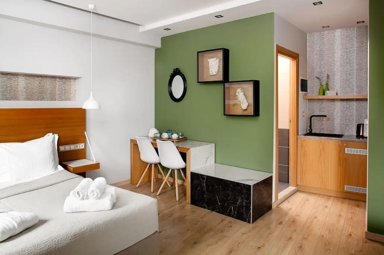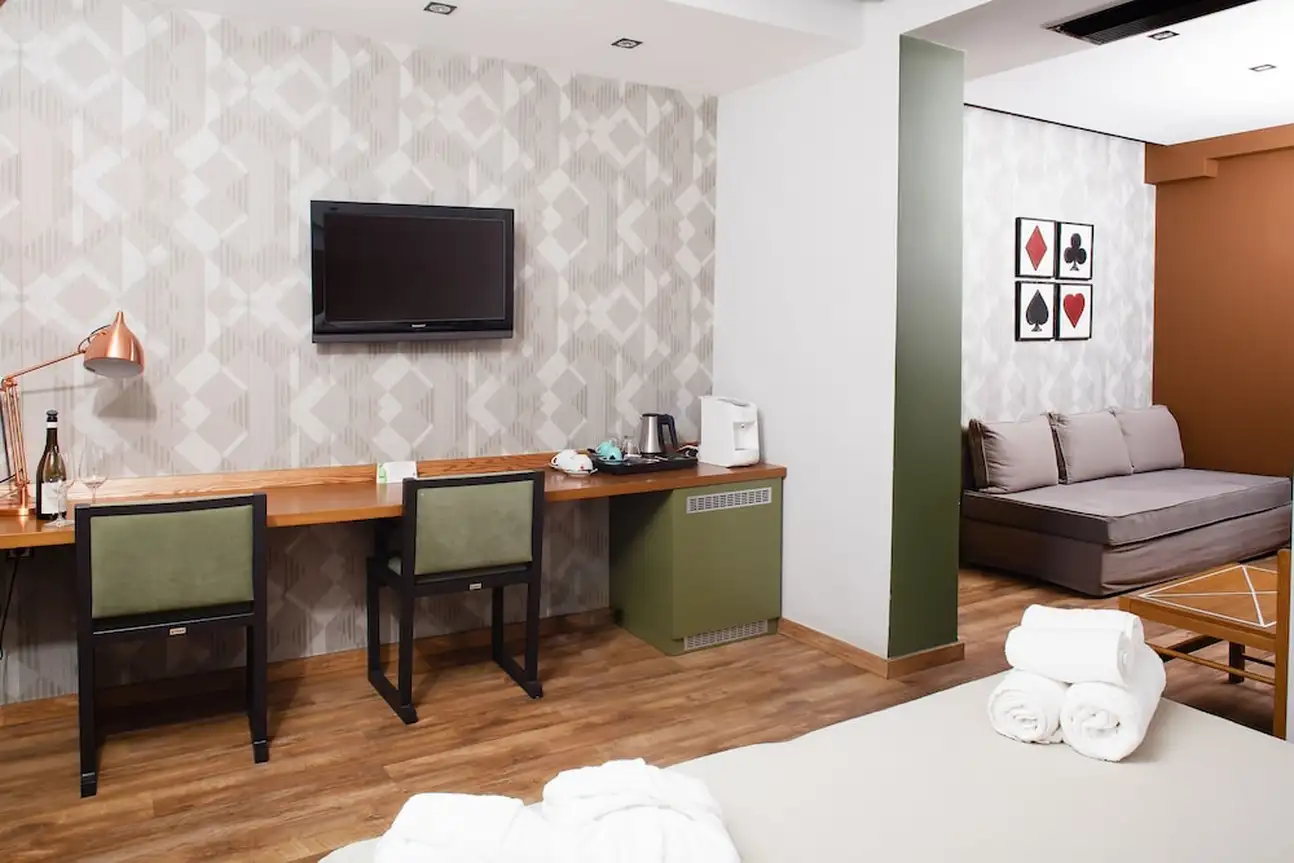 Le A for Athens dégage une atmosphère particulière, entre œuvres d'art contemporaines et pantone de couleurs terreuses qui se réchauffent au soleil, invité à l'année. Vasques taillées à même le marbre, murs de mosaïques, papier peint arty et sculptures font des lieux un endroit inattendu. Super vue Acropole incluse. Et côté table, les ingrédients et les saveurs grecs sont à l'honneur. L'hôtel vous propose aussi des dégustations pour une découverte approfondie du tsipouro, la plus populaire des boissons grecques. Des vélos sont en libre service pour découvrir les alentours en toute douceur.