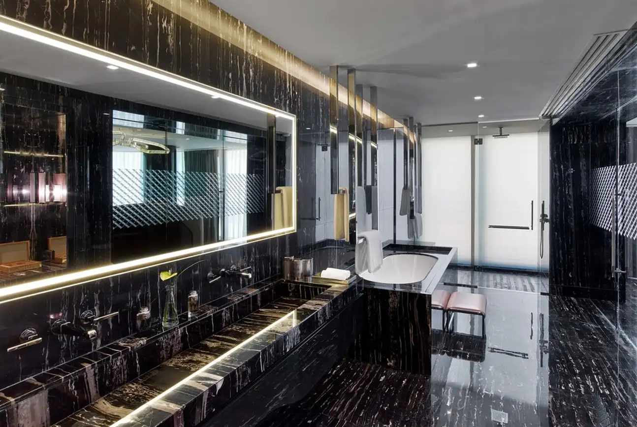 “Will you still love me when I’m no longer young and beautiful?” : qui n’a pas encore ces paroles et ces magnifiques notes de piano en repensant au dernier film Gatsby le Magnifique ? Au The St. Regis, c’est tout pareil ! La vibe intemporelle créée ici vous renvoie directement aux années 20 et vous serez subjugué dès vos premiers pas dans l’hôtel. Vous voulez parier ? OK. Vous avez combien en poche ? Beaucoup, on espère ! Avec ses lumières fortes et ses touches Art déco, l’hôtel en jette dans tous les coins ! Et ce n’est rien à côté du marbre noir, omniprésent à l’intérieur. Même les salles de bains en sont remplies pour une aura à la pointe du chic. Il faut bien aller avec le quartier, sous peine de se faire mal voir... Du coup, vous avez l’impression de résider dans un palace. On vous conseille l’une des chambres avec vue sur le parc Macka, vraiment pas mal. Puis une fois que vous serez bien réveillé, direction le sommet de l'hôtel pour admirer la ville sous son meilleur angle. Grimpez-y au lieu d’emprunter le téléphérique, ça vous donnera une excuse pour aller squatter le spa à votre retour. Quoique toutes les excuses sont bonnes, non ?