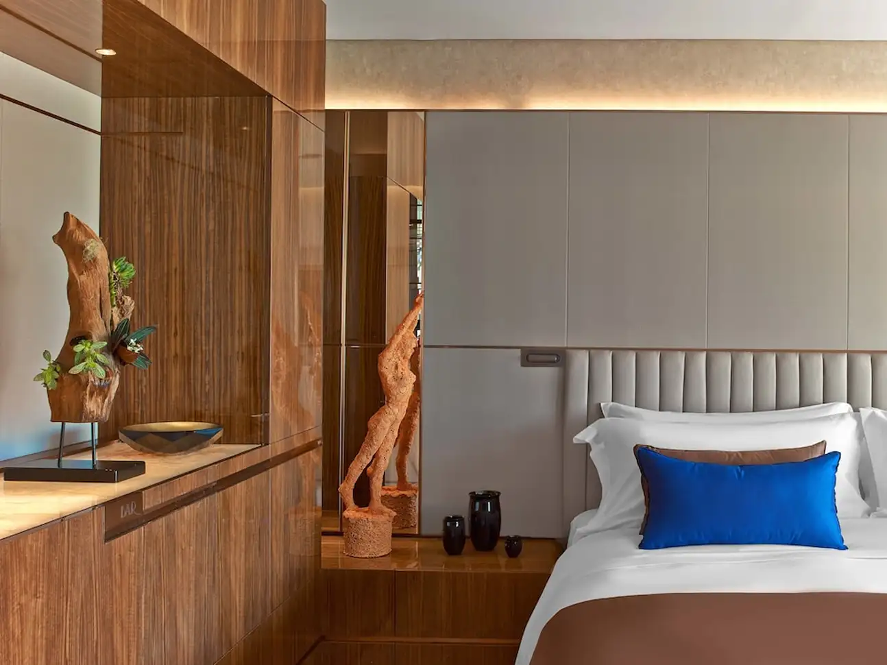 Un siècle tout pile après l’avènement du style Art déco, heureusement que certains hôtels continuent de le perpétuer. Comme si ce n’était pas assez, un tas de marbre noir et d’art contemporain s’y sont greffés !