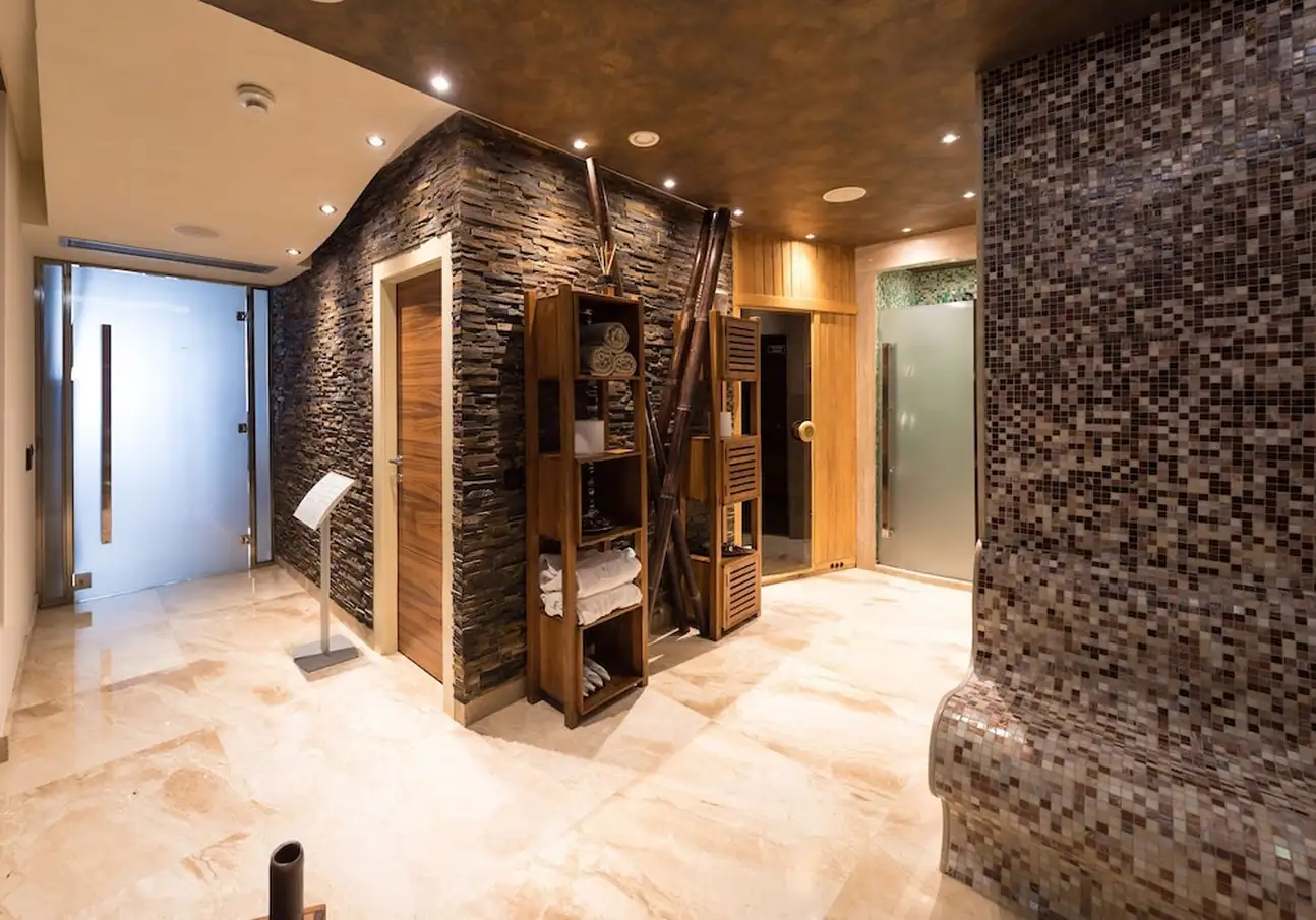 Farniente sur un transat au bord de l’eau, petit goûter pour reprendre des forces — le soleil, ça fatigue — trempette dans la baie puis dans la piscine et enfin, session spa : voilà à quoi ressembleront vos journées ! À noter que l’espace de détente est peu spacieux, mais peut être complètement privatisé.