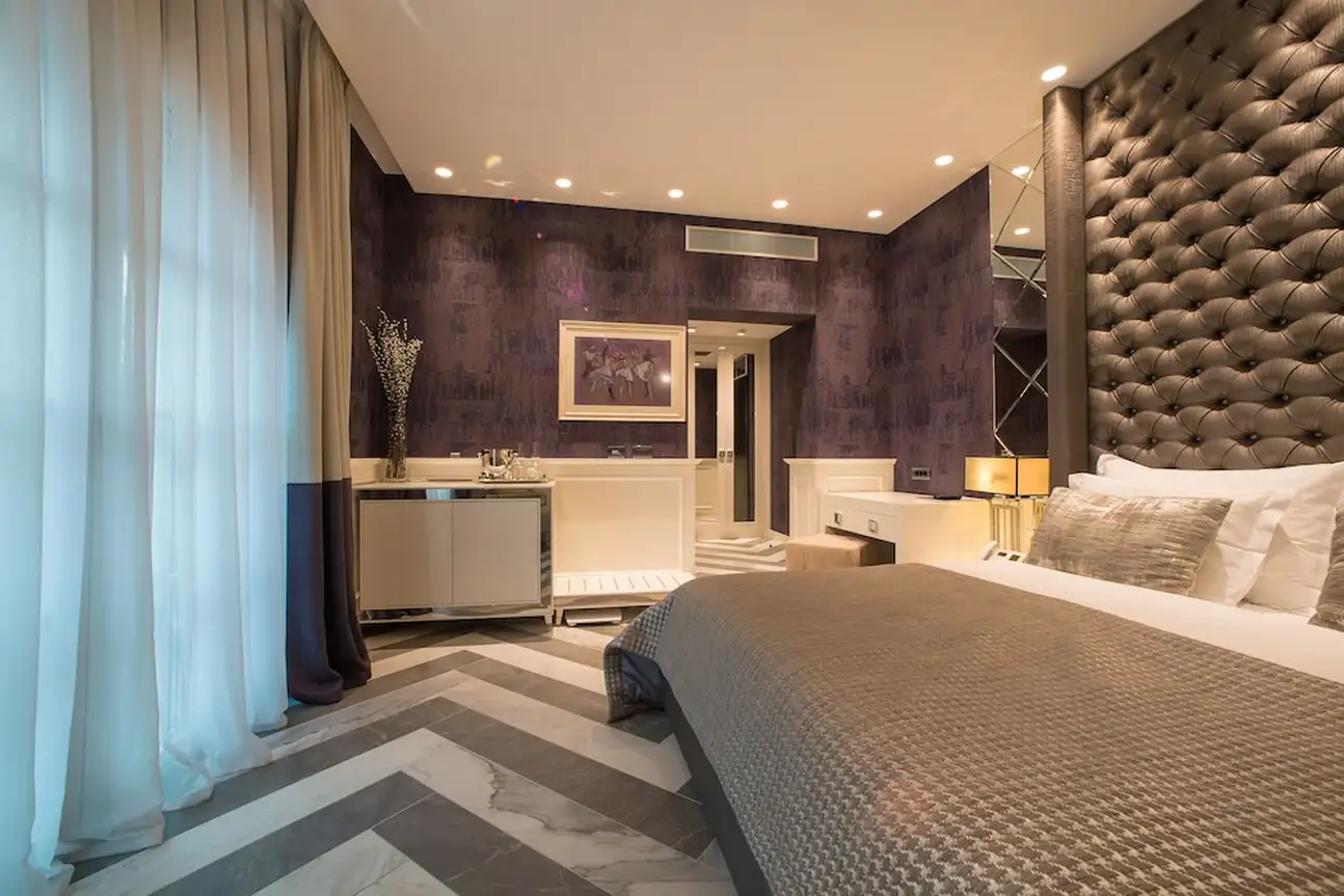 Chaque hébergement s’inspire d’une maison de mode différente, mais tous mettent l’accent sur les beaux tissus, en clin d’œil à l’histoire du Monténégro. Niveau déco, on adore la chambre Tiffany avec son parquet mural, ses luminaires à ampoule apparente et ses touches de bleu turquoise. La suite Valentino n’est pas mal non plus avec son mur de briques, ses dorures et ses rouges flamboyants ! Choisissez une chambre supérieure, au minimum, pour poser vos valises face à la baie de Kotor.