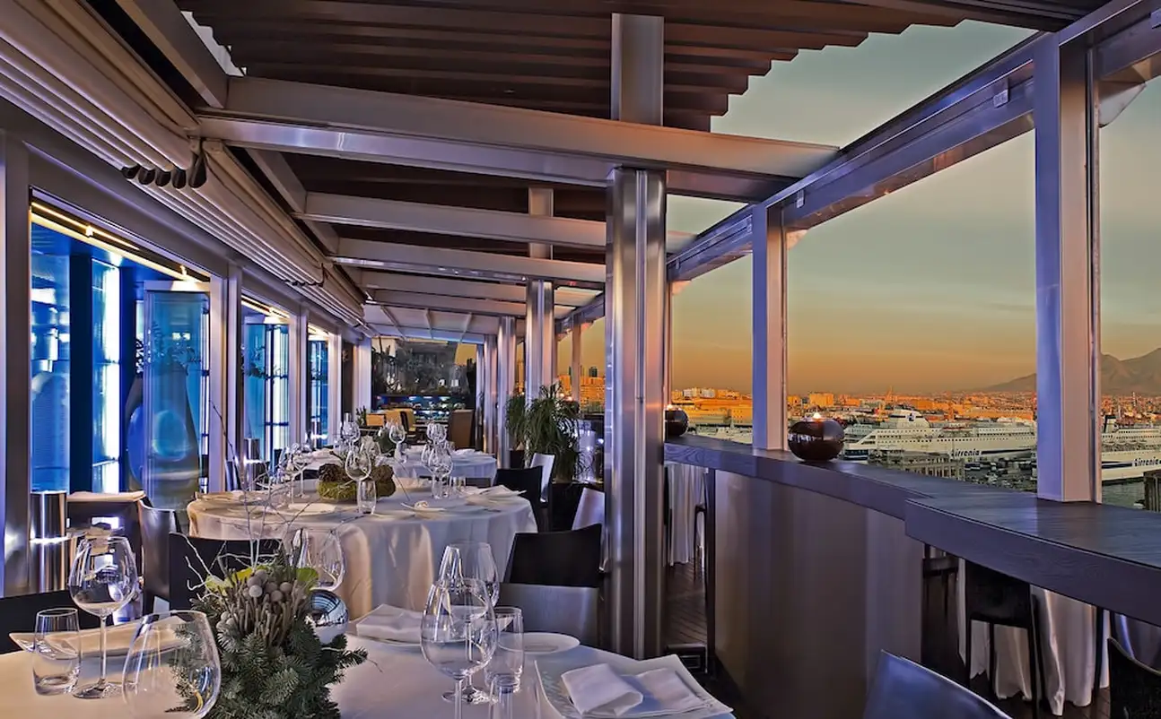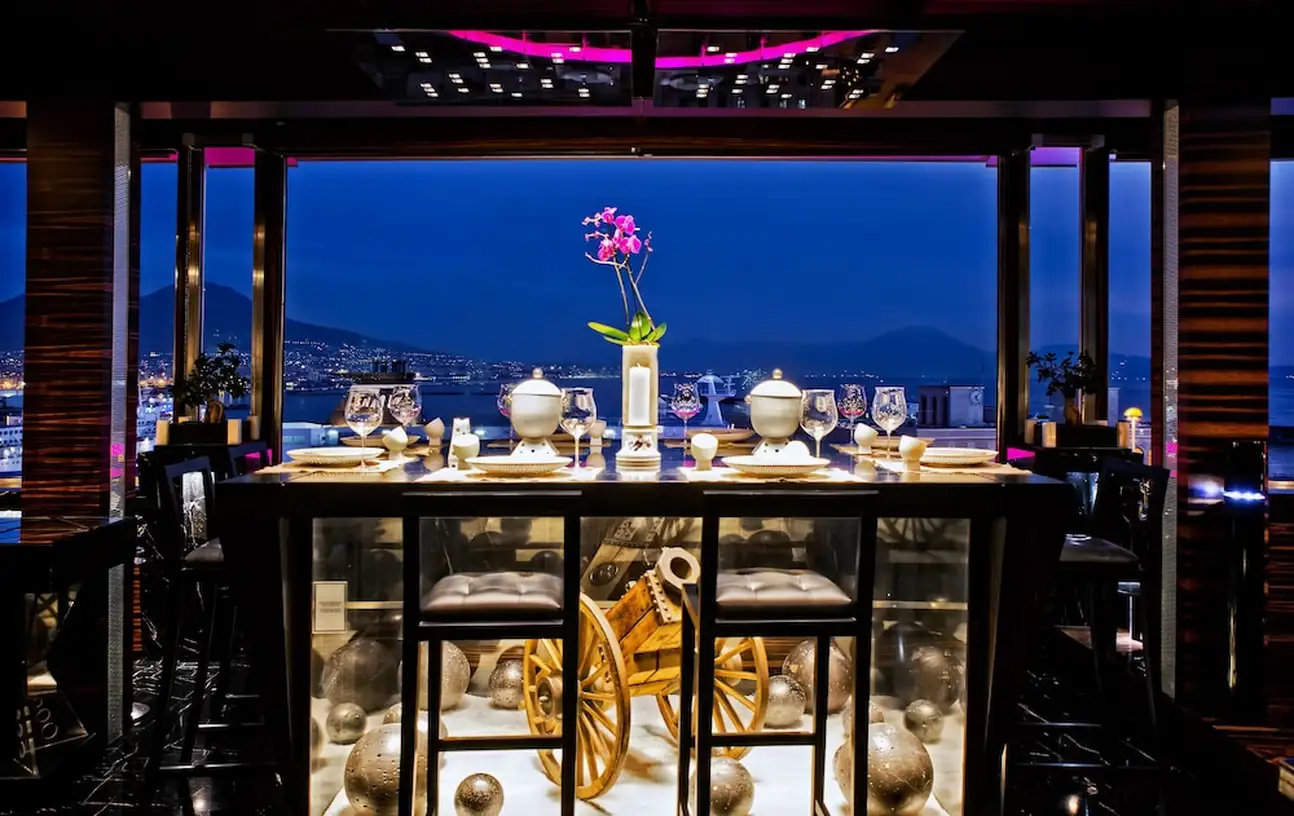 Les gourmands vont se régaler ! Au dîner, testez la table gastronomique (une étoile au Michelin) du 10e et dernier étage de l'hôtel, avec vue spectaculaire sur le golfe de Naples. Au menu, ça sent bon l'Italie et la pêche du jour. Le tout en accord parfait avec un vin de petit producteur local. Car la cave compte plus d'un millier d'étiquettes, avec de grands classiques, mais aussi des crus issus de circuits très courts. Quant au Bistrot, situé au 9e étage, juste à côté de la piscine, il est ouvert du matin jusqu'au soir. A la carte: snacking, salades, poissons grillés... Vous pouvez aussi y prendre votre petit déj' et voir Naples se réveiller.