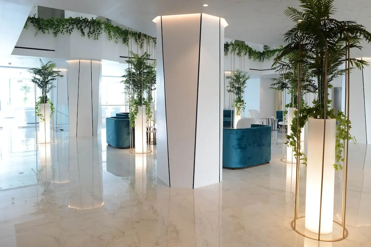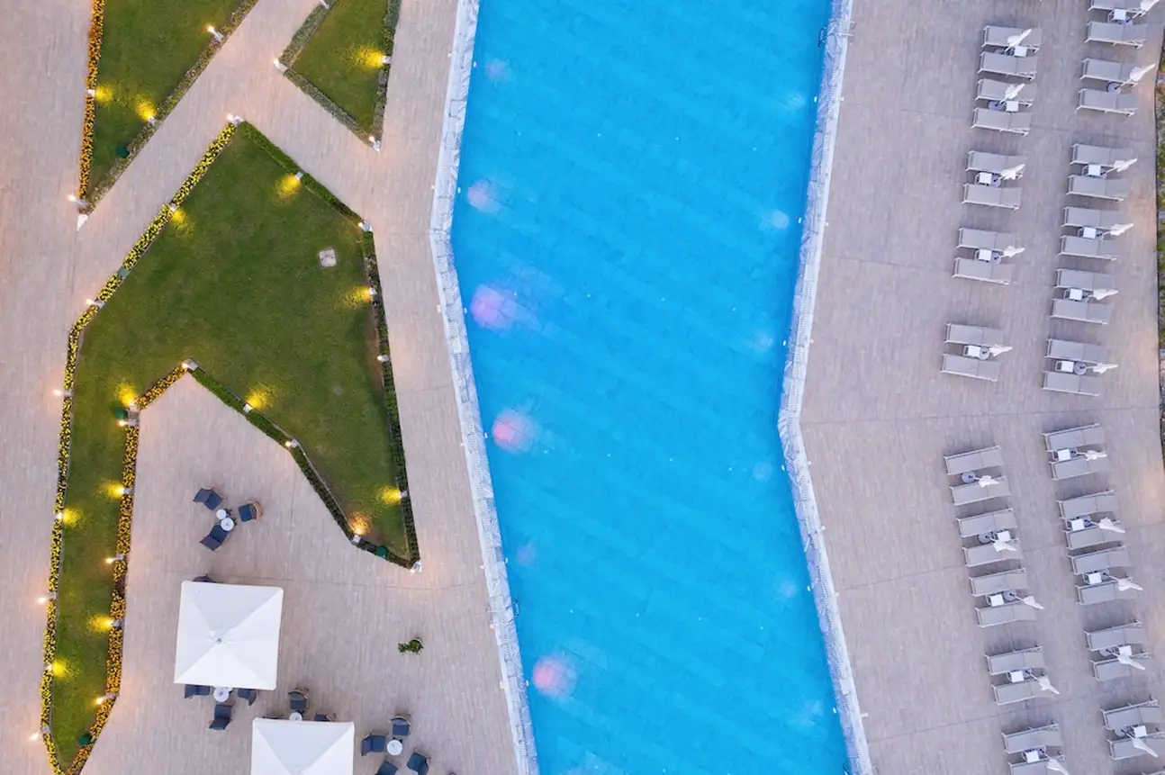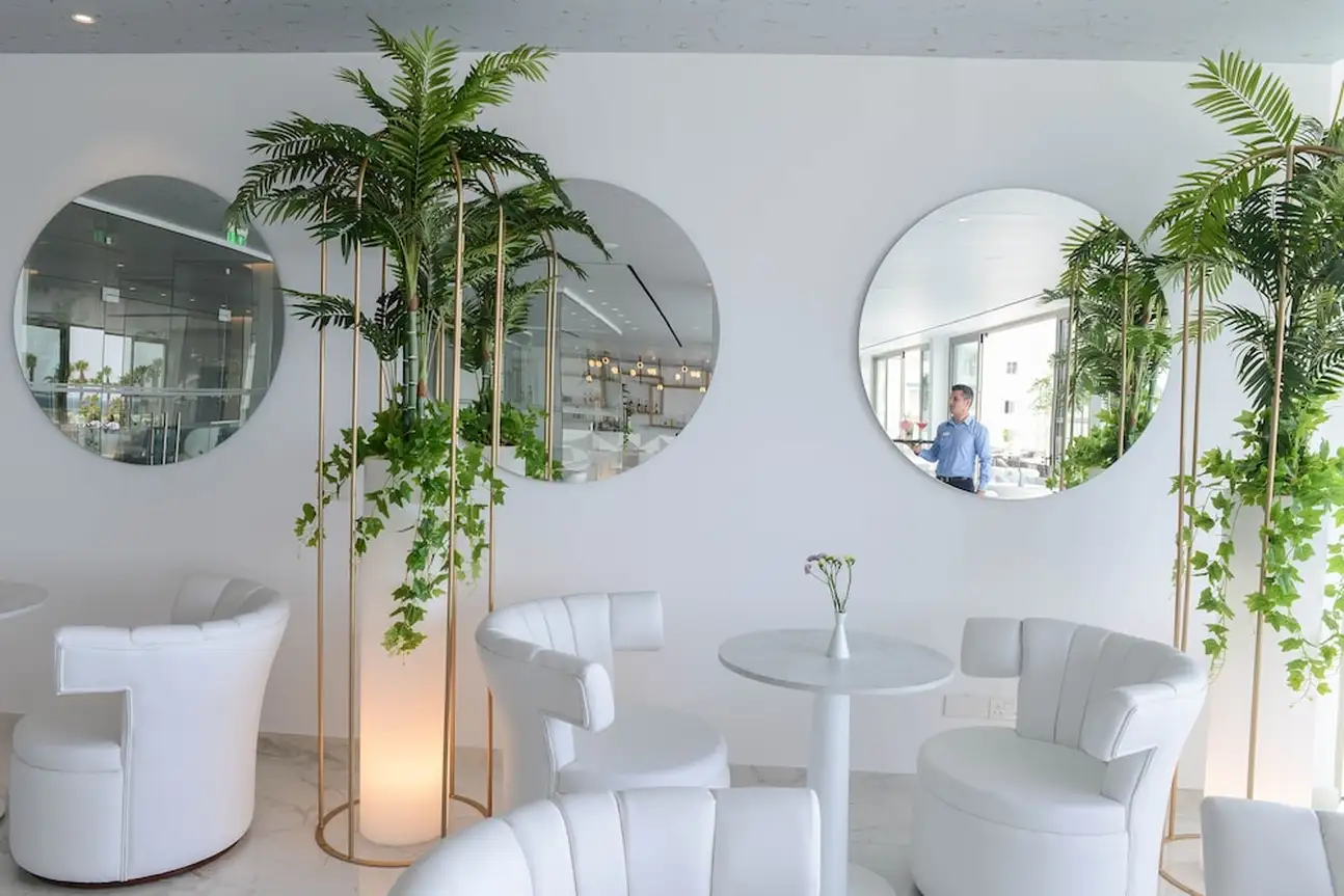 « Designed for adults », OK ? Au cas où ce n’est pas assez clair : cet hôtel est fait pour les adultes ! Ici, pas d’animations chiantes le jour et la nuit, pas de mini club et surtout pas de gosses qui courent partout, vous pouvez en avoir le cœur net. OUF ! Au contraire, vous vous baladerez au milieu d'intérieurs très chic et design aux influences Art déco, entièrement faits de blanc avec quelques touches dorées. Petite note finale : tout ça se mélange à des plantes omniprésentes pour un effet naturel imparable. A l’extérieur, des parasols en forme de faux palmiers blancs près de la piscine continueront de vous faire crier au design, entre nouveauté et modernité. Normal, l’hôtel a ouvert en 2019 ! Ceci explique donc également les chambres à la déco ultra-chic et aux salles de bains en marbre parfaites. Pour vous divertir, pas de mini club, on vous l’a déjà dit, mais plutôt un spa magnifique avec des massages quasi-addictifs et des concerts variés plusieurs fois par semaine : du jazz, des chanteurs de variété, des guitaristes. Tout pour vous séduire en vous regardant droit dans les yeux ! La touche ultime de ce resort où tout fonctionne à la perfection. Il faut le voir pour le croire !