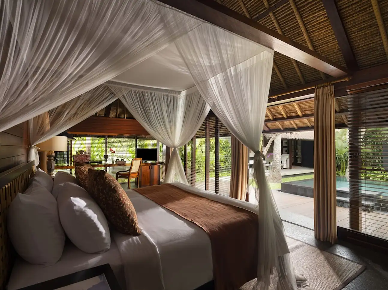 Votre propre villa, votre propre piscine, votre propre paradis rien qu’à vous… On abuse peut-être un peu, mais c’est bel et bien ce que vous ressentirez pendant votre séjour ici ! Déjà, si vous le souhaitez, vous pourrez le passer en parlant au minimum syndical d’êtres humains. Pour celles et ceux qui sont très vite saoulés par les autres en voyage, ça peut s’avérer très libérateur et reposant. Ne faites pas genre, on vous connaît ! Dans votre petite villa traditionnelle (enfin, petite, quand même 500 ou 600m²…), c’est le grand luxe, et bien plus encore : une salle de bains à ciel ouvert, un lit à baldaquin, un petit jardin tropical, un pavillon ouvert, une piscine privée paradisiaque qui semble si naturelle (ce bleu !) et… on a gardé le meilleur pour la fin, une corbeille de fruits remplie tous les jours. On s’occupe de tout pour vous, on peut vous apporter un petit déjeuner flottant dans votre piscine, on peut vous préparer un dîner aux chandelles avec des pétales de roses de partout. Vous voulez savoir la meilleure ? Vous pouvez venir au petit déjeuner à n’importe quelle heure. Oui, oui, même à 21 heures, il est dispo toute la journée ! Du jamais vu ! Le genre d’innovation qui serait pratique pour les hôtels de fêtards. Mais ce n’est pas le cas ici, repos garanti, que vous testiez le spa ou non !