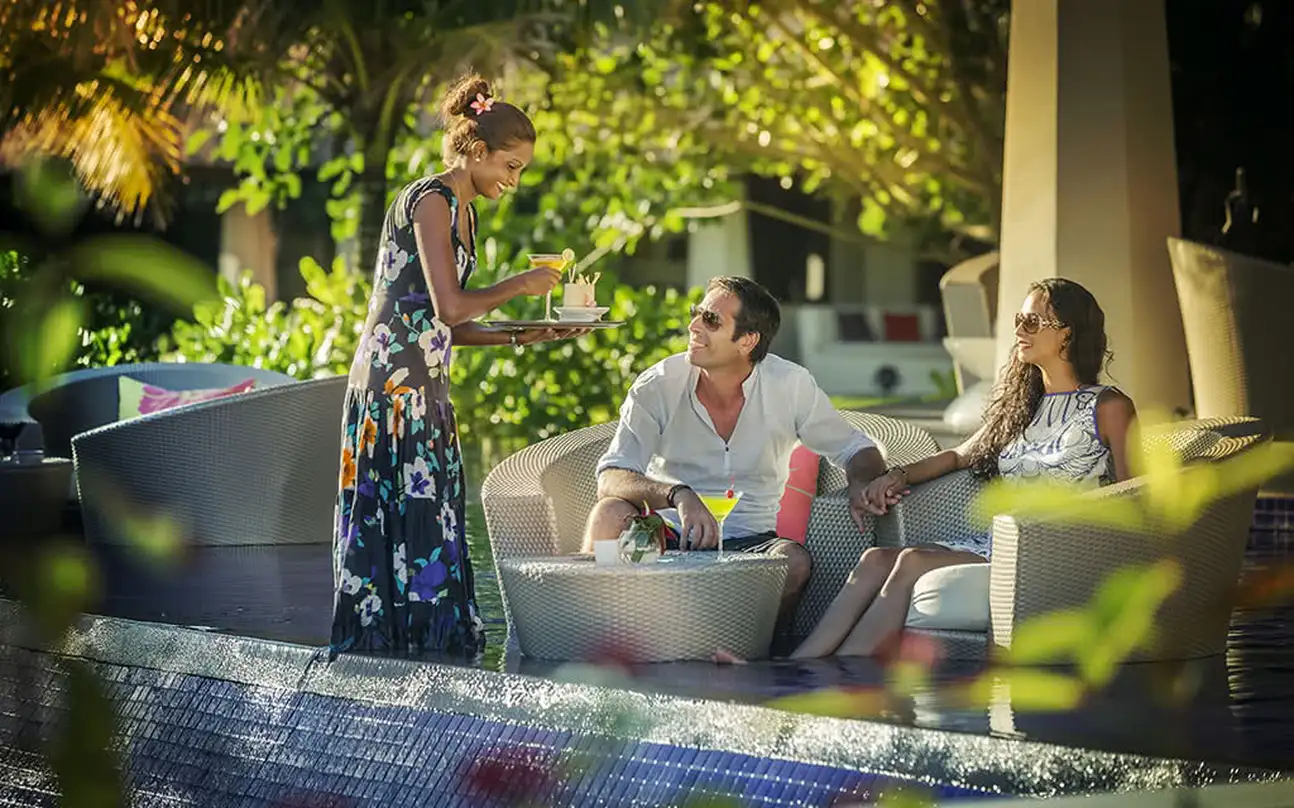 Savourez la cuisine française aux riches saveurs locales dans ce restaurant sophistiqué de l'île Maurice surplombant l'océan et la piscine.