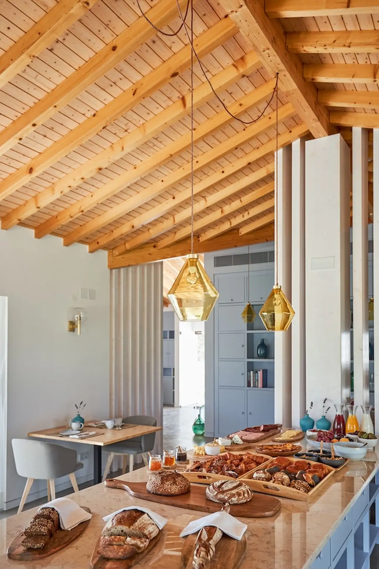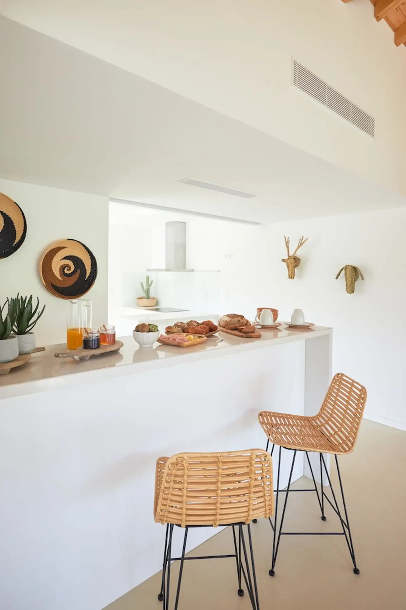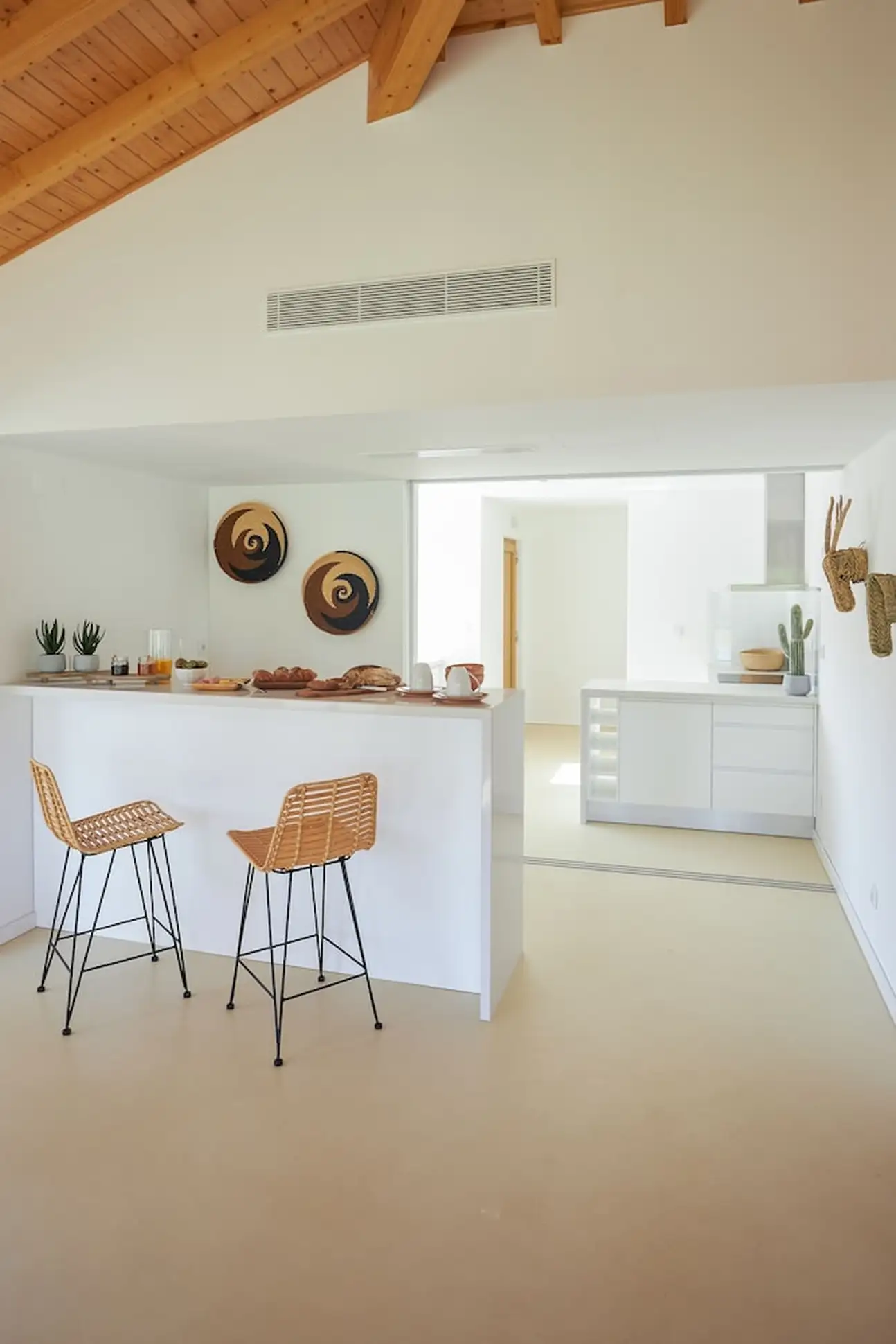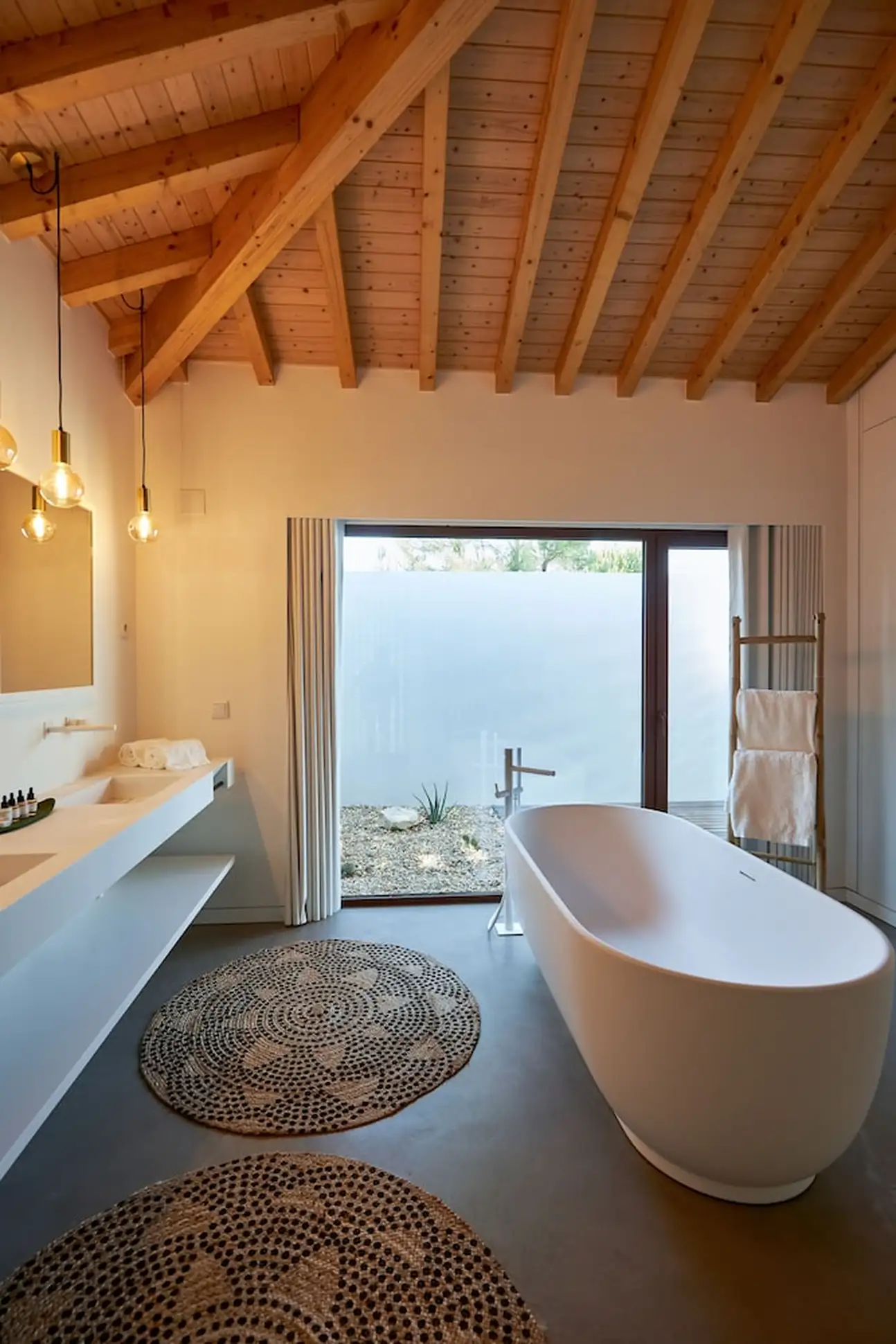 Moderne, intimiste et minimaliste, l’esprit des 20 chambres et villas a été pensé pour une relaxation intense. Tout n’est que bois et beige, dans un design épuré et harmonieux, avec des grandes baies vitrées ouvertes sur la nature. Les salles de bain sont canons avec leur sol en béton ciré gris souris et leur déco inspirée de l’élégance nippone. Vous y trouverez de grandes vasques grises, des portes en treillis boisé clair et une symétrie parfaite. Même le design de la bouilloire est canon, noir laqué avec son manche en bois. Dans les chambres doubles de 20 m², on kiffe les hamacs sur les terrasses, l’osier et les tissages qui donnent un aspect « handcraft » très sympa dans cette ambiance less is more, tout comme dans les suites de 70 m². Et pourquoi ne pas craquer pour une villa 2 ou 3 chambres, de 150 à 200 m², avec piscine privée ? Vous allez adorer leur baignoire arrondie au beau milieu de la salle de bain... Sans oublier a cuisine ouverte bien-sûr et son bar blanc immaculé, idéal pour refaire le monde avec un bon verre de vin de l’Alentejo !