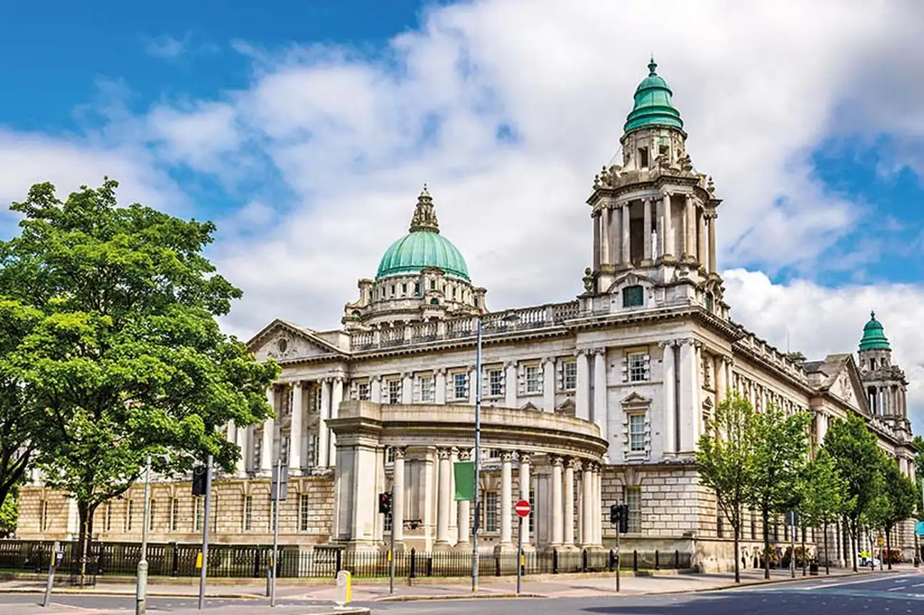 route en direction de Cairnryan pour embarquement à bord d'un ferry à destination de Belfast (2h15 de traversée). Déjeuner libre à bord du ferry. L'après-midi, débarquement et tour panoramique de Belfast, la capitale de l'Ulster, à l'Histoire tragique et passionnante, encore aujourd'hui divisée par un mur, fermé la nuit. Les murs de Belfast sont aussi couverts de fresques politiques qui rappellent le conflit historique entre catholiques et unionistes. Dîner nuit dans le comté d'Antrim.