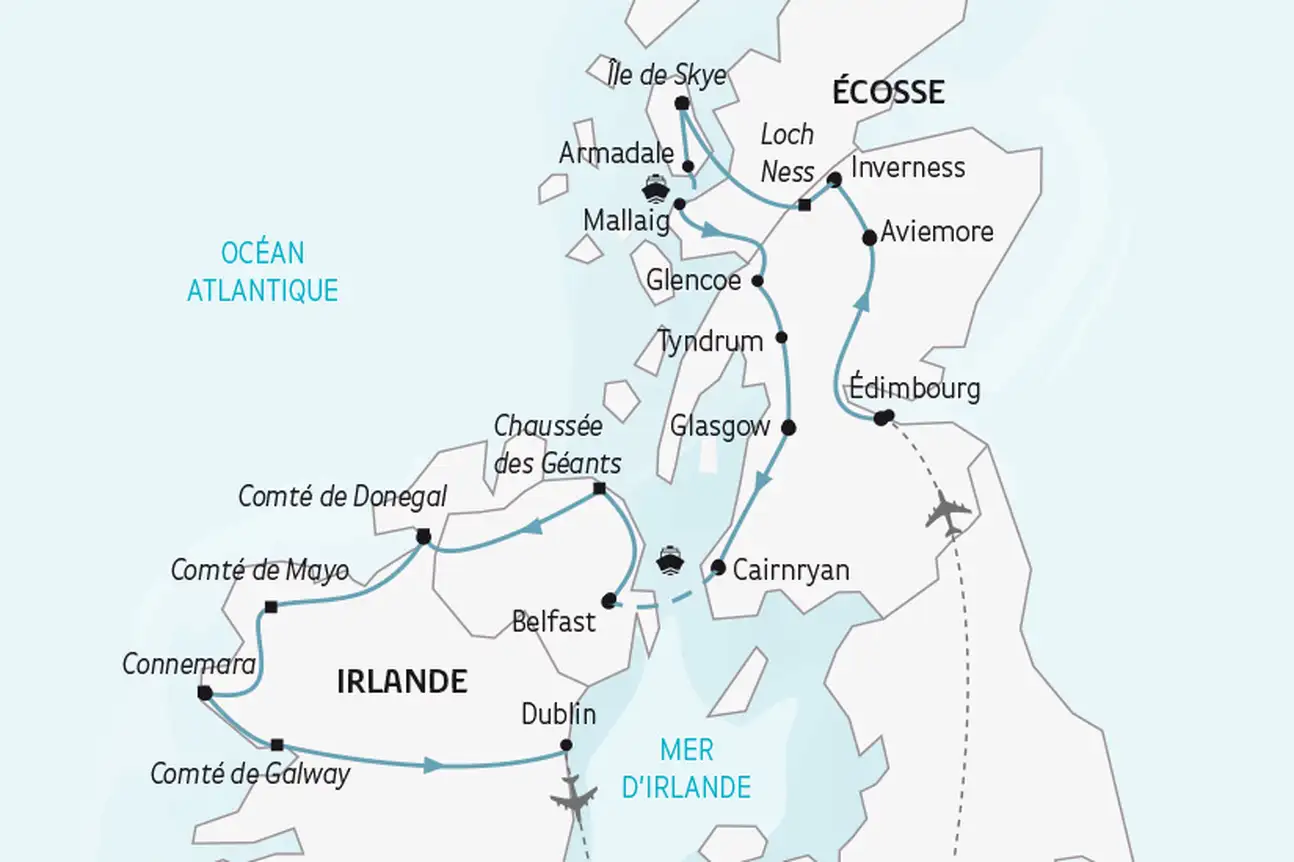 La visite des plus beaux sites des deux pays : le château d'Édimbourg, la Chaussée des Géants, le Connemara