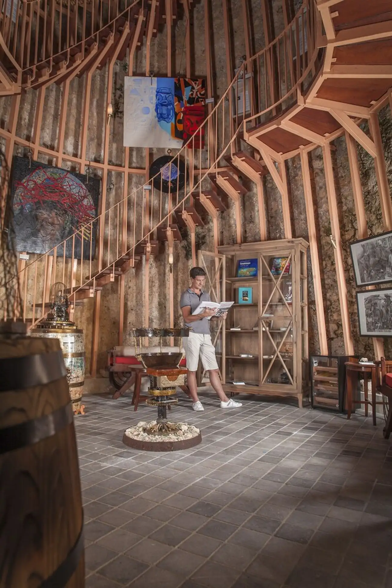 Ce que l'on aime ici, c'est le lien fort tissé avec l'histoire de la Guadeloupe. L'occasion pour les clients de s'informer et voyager en apprenant. Cette dimension historique et culturelle est liée, bien sûr, à la présence du moulin : une bâtisse du XIXe, aménagée en bibliothèque consacrée au patrimoine de la Guadeloupe et ouverte aux artistes locaux dans le cadre d'expos.