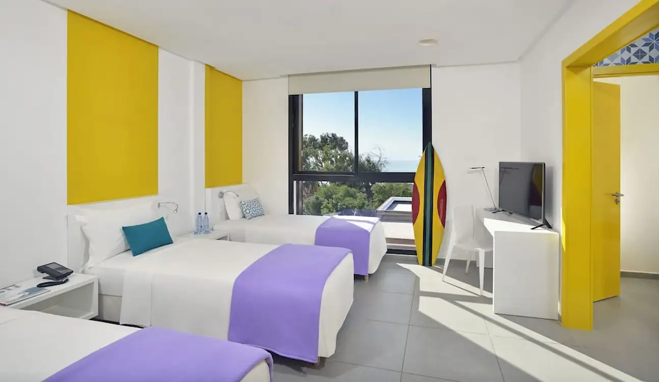 Esprit surf, es-tu là ? Oui, cent fois oui ! Comment pourrait-il en être autrement d’ailleurs, puisque Taghazout (prononcez "Tarazout") caracole en tête des spots de surf les plus réputés du Maroc. Heureusement, grâce à des hôtels comme le Sol House, le charmant port de pêche au nord d’Agadir a su conserver sa tranquillité et son authenticité. Nature, sport et écotourisme : voilà les trois piliers de ce petit bijou de la chaîne espagnole Mélia, récemment sorti de terre, qui rappelle un peu le concept du glamping, mais avec le confort et les installations premium en plus. Ecole de surf, piscine, deux restaurants, salle de fitness, mini-spa, club enfants, terrain de beach volley… L’ambiance est cool, jeune, avec cette étonnante impression d’être à la fois coupé du monde et hyper-connecté puisque vous êtes invités à utiliser les réseaux sociaux pour commander une boisson, un taxi… Le principe ? Un hashtag et vous êtes servi. Côté hébergement, belle surprise avec ces cabanes et bungalows en bois aux couleurs acidulées, dont la déco se limite bien souvent à une planche de surf. Le matin, vous êtes réveillé par le chant des oiseaux et le bruit des vagues. Le soir, vous admirez le coucher du soleil plein cadre sur l’océan. Alors, prêt à vous jeter à l’eau ?