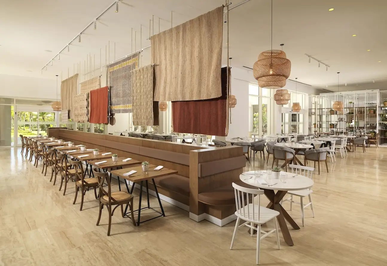 Oubliez les buffets intérieurs à l'air conditionné et grouillants de monde ! On voudrait tous déjeuner, dîner… et danser- à la Rumba qui malgrè son nom de discothèque est un lieu où s’assied, sur une sorte d'estrade juste devant les bleus de la mer caraïbe. Jolies chaises façon rotin aux assises bleu azur, tables et balustrades en bois. Esthétique art déco au Mosaico, décor oriental au Muoi, ambiance de taverne élégante au Casa Nostra. Et bien sûr, maillots trempés de sueur ( derrière des vitrines!) et trophées au Replay, un bar sportif.