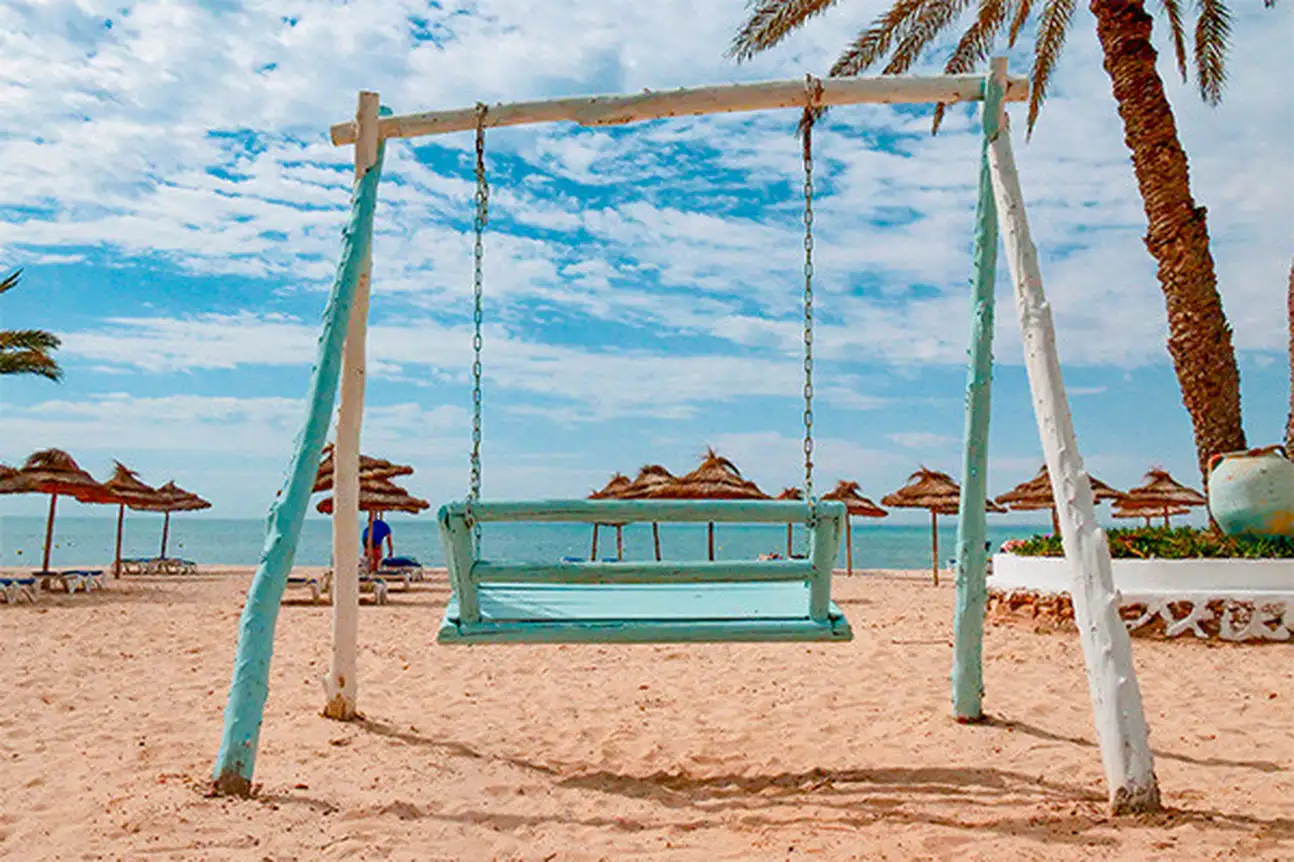 Situé au coeur d'un jardin de 14 hectares, sur la côte sud-est de Djerba et disposant d'un accès à une plage privée de sable blanc.