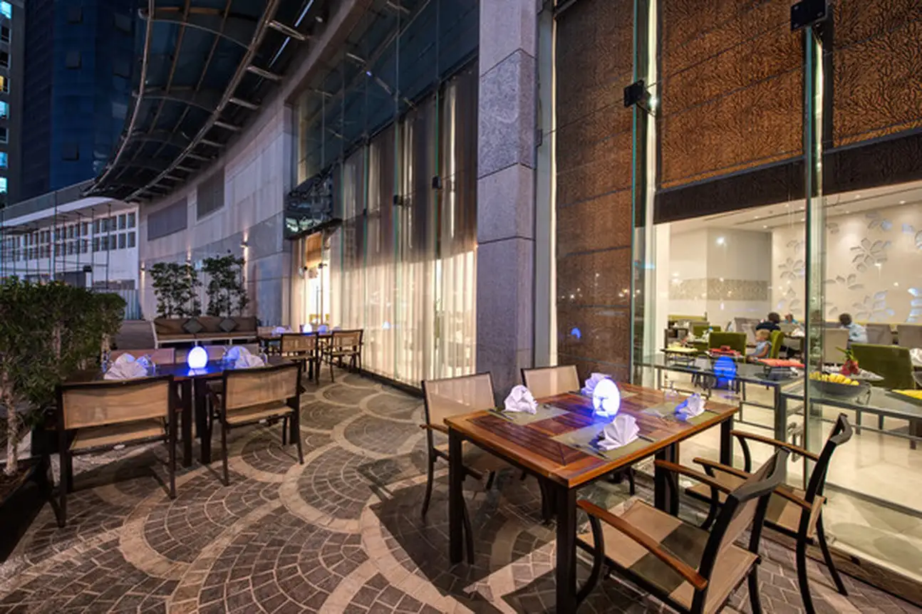 Restaurant Gazebo Terrace : restaurant familial, avec vue sur la crique de Dubaï, situé à côté de la piscine extérieure.