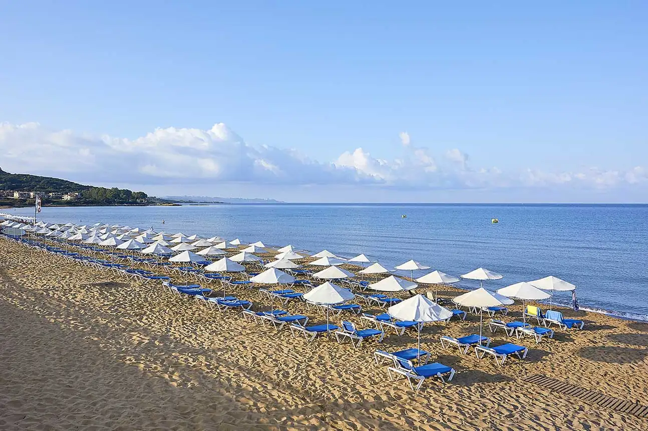 • 1 grande plage de sable blond avec transats et parasols gratuits (gazebos avec supplément).