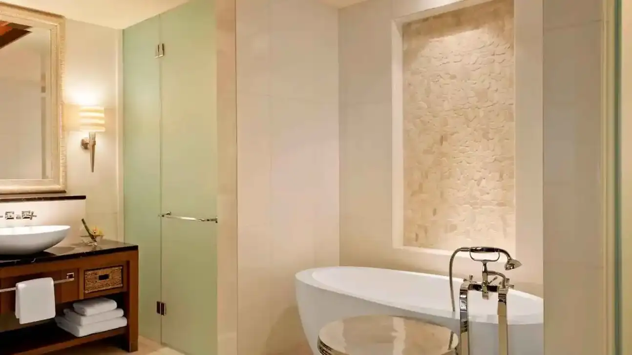 - Suites St. Regis : Suites de 80 m², pouvant accueillir jusqu’à 3 personnes, avec vue mer et coin salon.