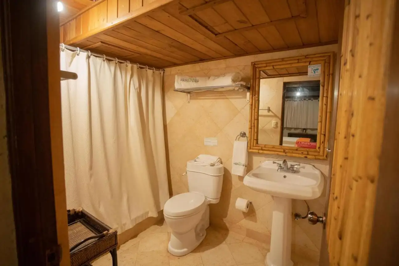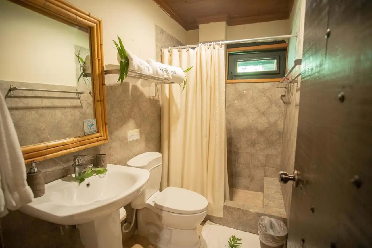 Platón Ecolodge se veut 100 % green et auto-suffisant énergétiquement. Quatre générateurs posés sur un affluent du fleuve produisent l'énergie nécessaire au fonctionnement de l'hôtel. On peut voir ce mini barrage électrique à côté du toboggan aquatique. Aucun traitement n'est ajouté à l'eau des quatre piscines, qui se déverse ensuite dans le fleuve. Les lampes sont équipées en leds qui consomment peu d'énergie, et l'usage du sèche-cheveux dans les salles de bains est interdit ! À table, on sert de l'eau de source, les douches sont à flux réduit et les toilettes aussi. Les déchets compostables nourrissent les animaux et les déchets non-biodégradables sont recyclés à Santo Domingo.