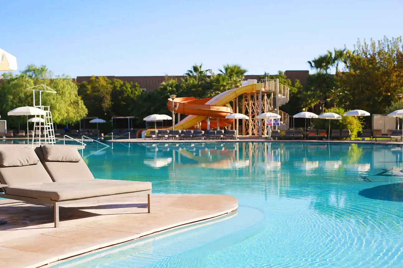 - Bar Oasis, lieu de rencontre pour une ambiance festive au bord de la piscine, sous le climat chaleureux de la ville ocre et avec en toile de fond les belles montagnes de l’Atlas.