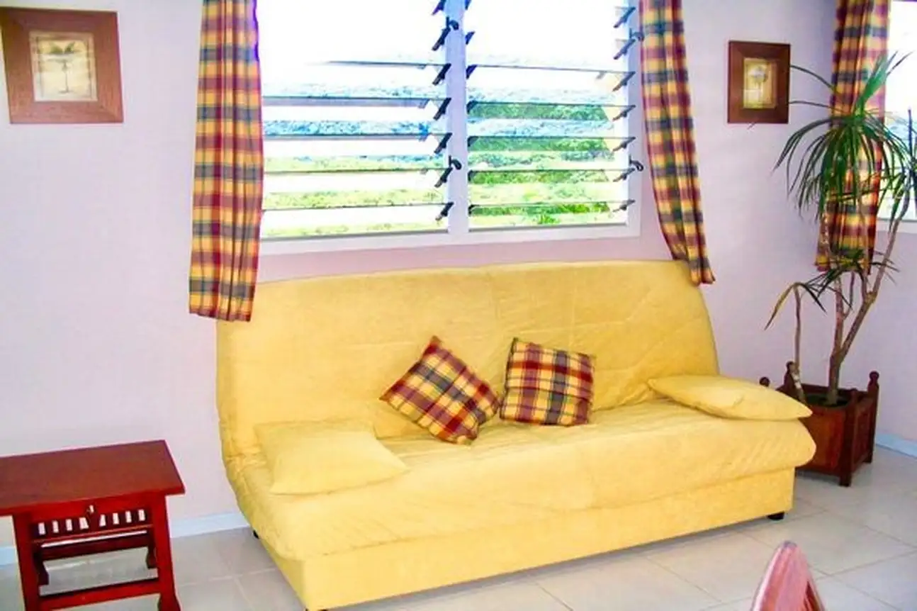- Studio Caraïbes (40 m²) : situé au 1er étage : lit Queen size (160x200), canapé-lit, cuisine avec grand four, micro-ondes, lave-vaisselle, lave-linge, terrasse vue panoramique sur la mer. Capacité maximum : 2 adultes.