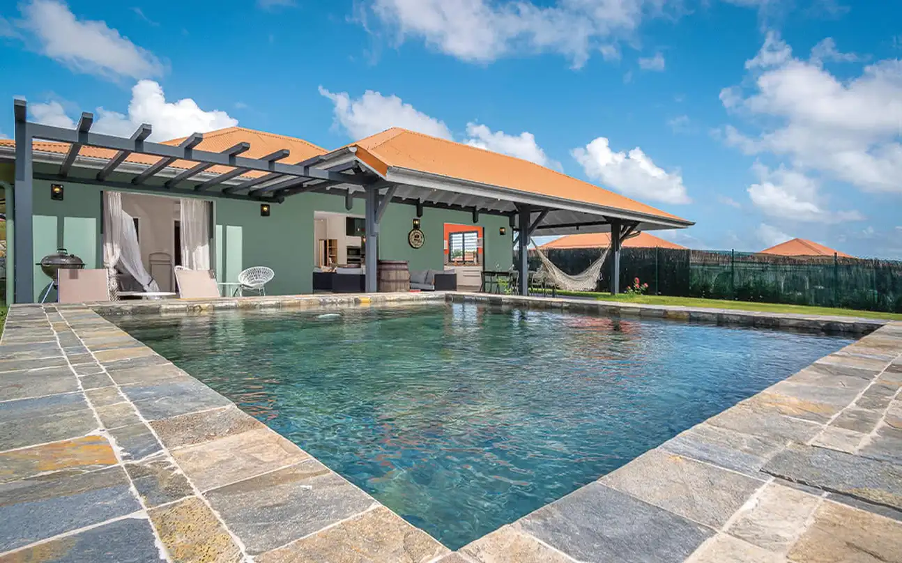 - 1 piscine privée à pierre volcanique au sel 4 m x 5 m avec alarme et bains de soleil