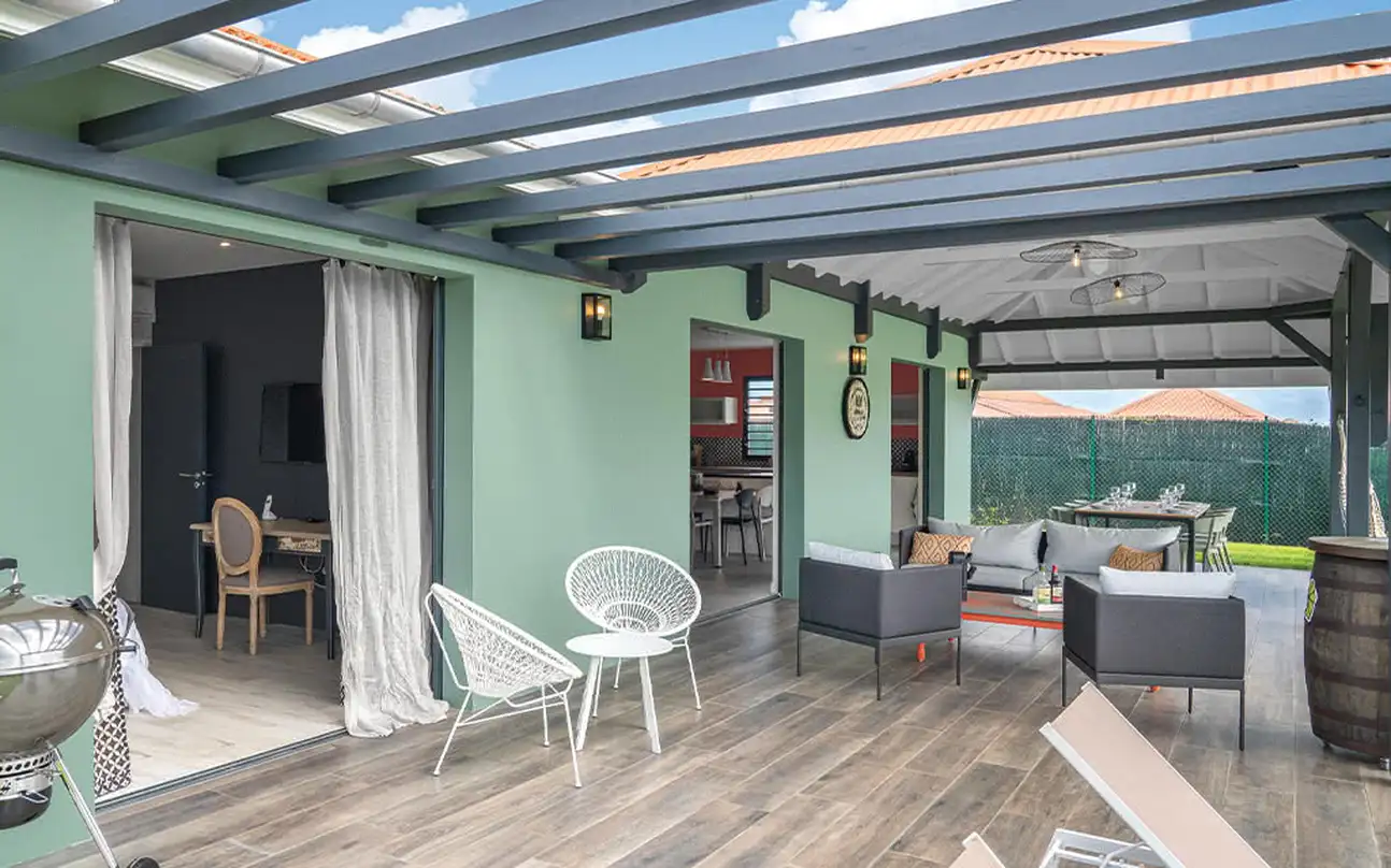 - 1 terrasse 32 m² (16 m² couverte et 16 m2 sous pergola) avec salon de jardin, espace repas, barbecue