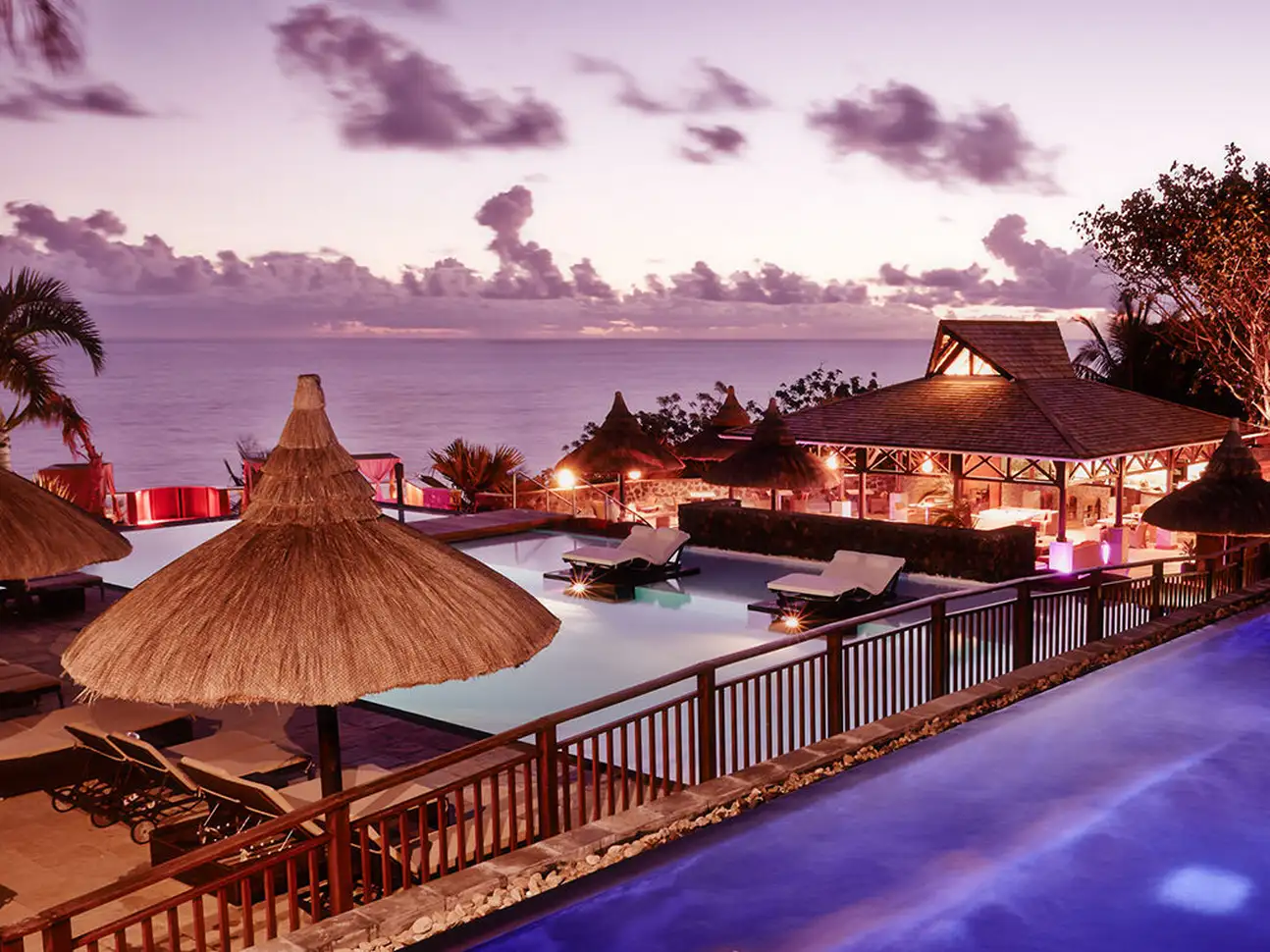 Surplombant la plage de Grand Anse, ce superbe hôtel posé au milieu d’un parc tropical de 3,5 hectares, entre champs de canne et océan, offre des vues grandioses. Pierre et bois, harmonie des couleurs, omniprésence de l’eau, l’atmosphère est très zen et intimiste.