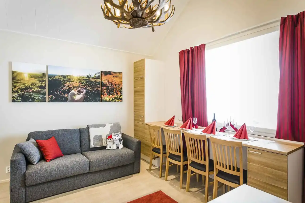 La demi-pension est servie sous forme de buffet de cuisines locale et internationale. Le Village du Père Noël regorge aussi de plusieurs restaurants offrant une restauration variée.