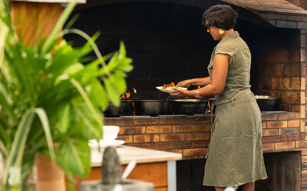 « La Marmite » Tradition culinaire créole avec ses caris cuits au feu de bois. Formule buffet à volonté (payant)