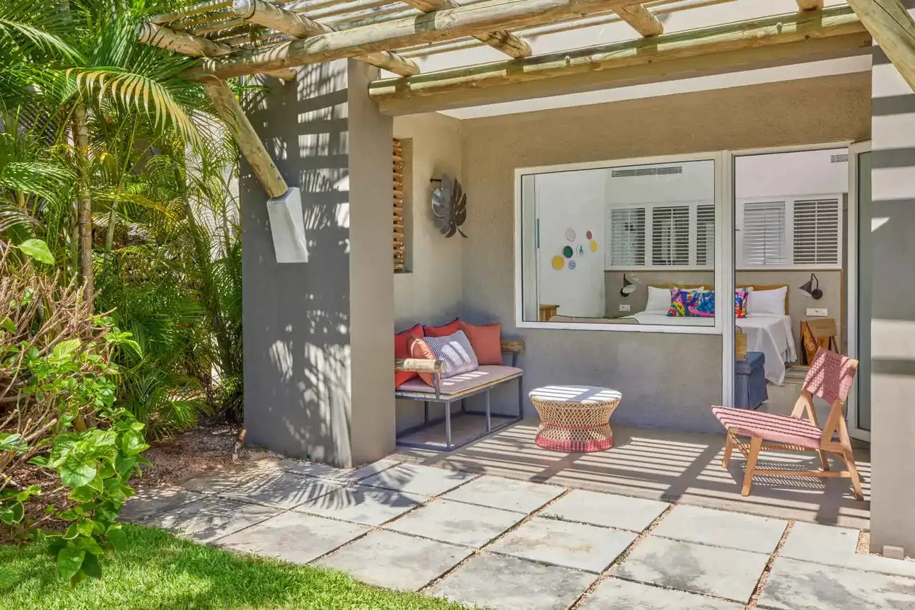 La terrasse privative aménagée avec fauteuil et table basse constitue un espace extérieur propice à la détente. Soucieux d’un tourisme plus responsable, Zilwa Attitude est exempt de plastique à usage unique et propose une boutique en vrac pour composer son minibar selon ses envies.