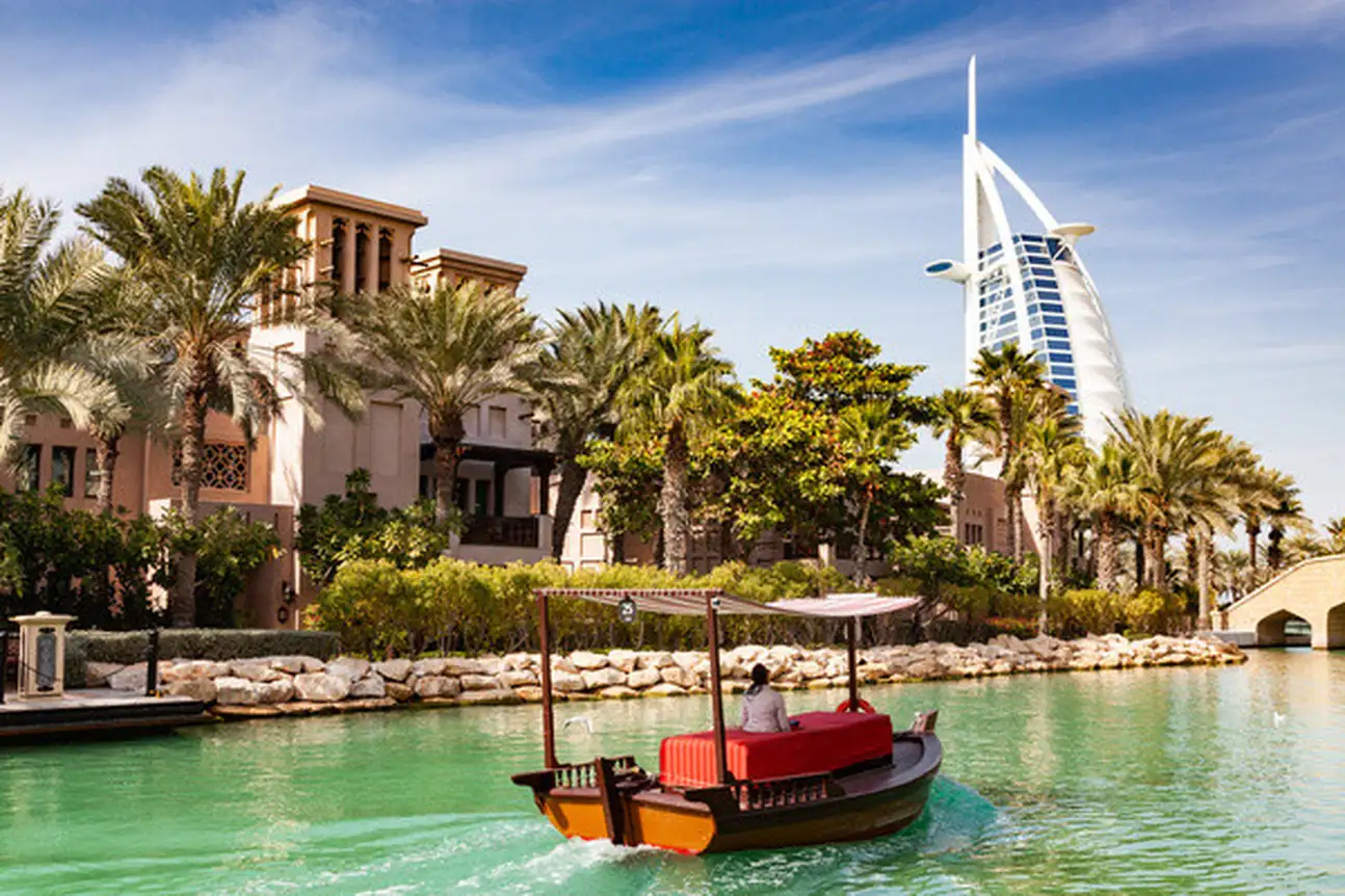 Petit déjeuner à l'hôtel. Dubaï est une ville unique et spectaculaire. Découverte des gratte-ciels le long de la fameuse autoroute Sheilh Zayed qui traverse la ville. Arrêt photo devant le Burj Al Arab, cet hôtel 7 étoiles emblématique de Dubaï. Continuation vers le quartier de la Marina. Direction vers la Palme Jumeirah pour deux arrêts photos devant les hôtels Atlantis The Palm et Atlantis The Royal. Suite dans le quartier de Downtown et montez au 124ème étage de la Buri Khalifa, plus haute tour au monde. Profitez d'une vue imprenable à 360 degrés sur la ville. Déjeuner dans un restaurant local. Après avoir découvert la partie moderne de la ville, changez de décor et promenez-vous dans les rues étroites du quartier historique de Bastakiya avec ses tours à vent arabes. Apprenez en plus sur l'histoire et les traditions de Dubaï au musée Al Shindagha qui inclus notamment la visite de la maison d'enfance du Sheikh Al Maktoum. Traversez la crique de Dubaï à bord d'un abra (bateau -taxi local, traditionnel) afin de rejoindre les souks aux épices et de l'or. En début de soirée, départ pour un dîner-croisière, puis retour à l'hôtel pour la nuit.