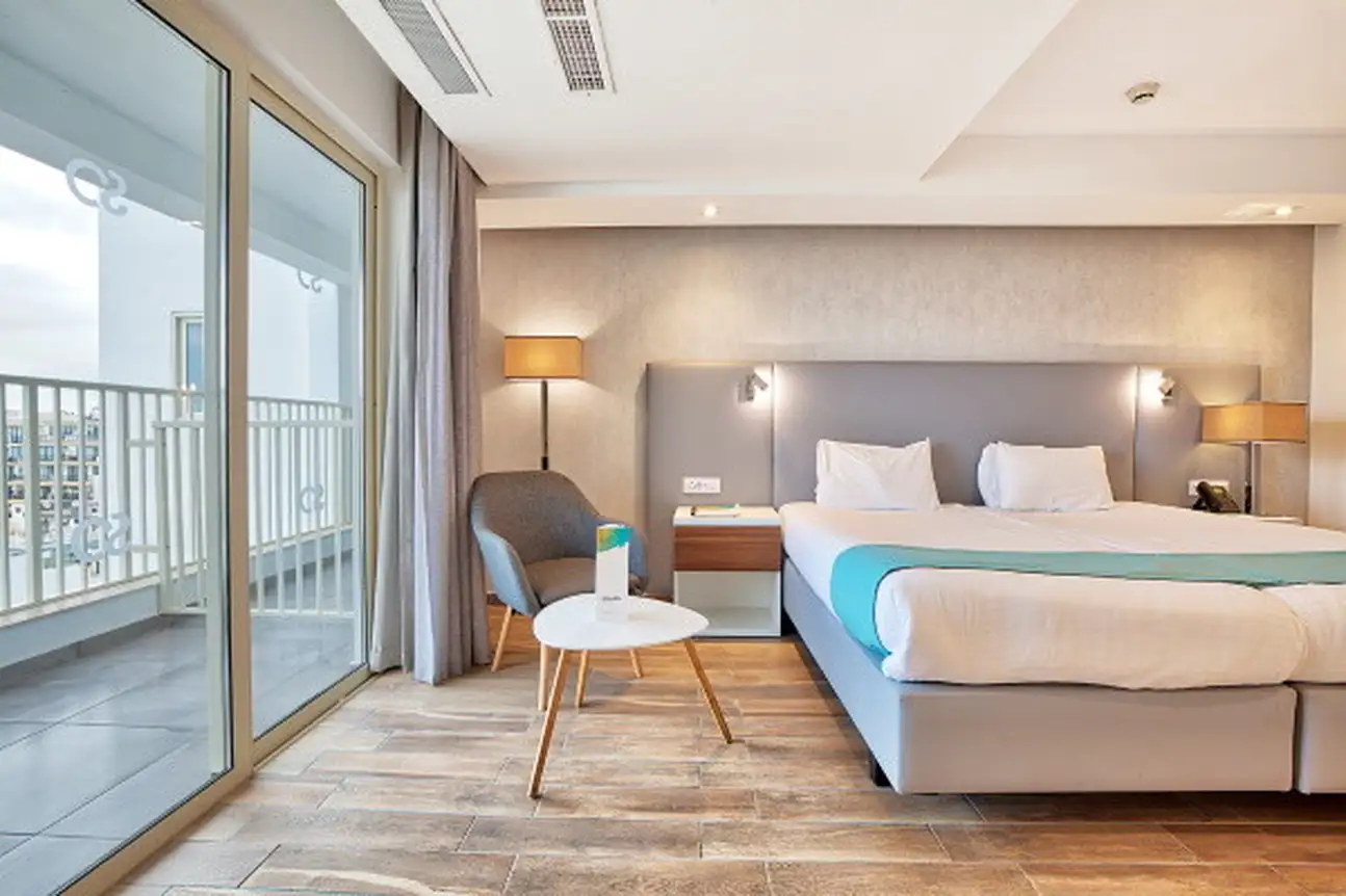 - Chambre standard avec balcon (30 m²). Capacité maximum : 4 adultes.
