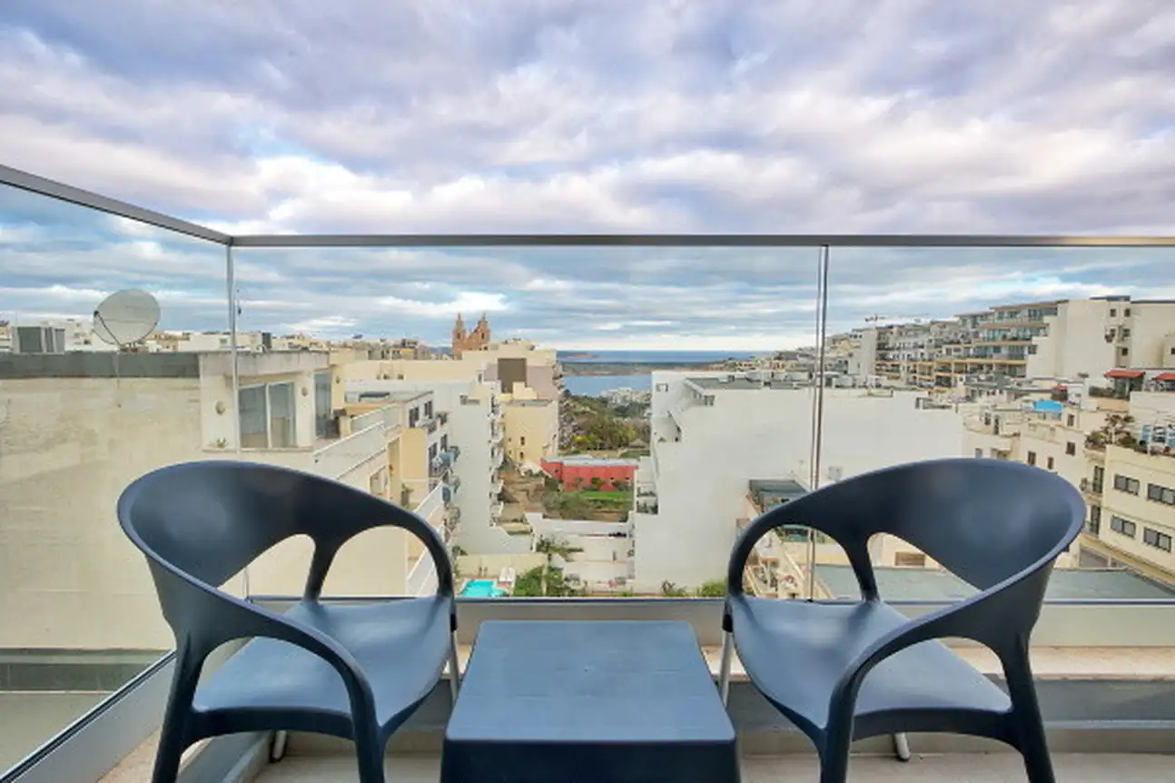 - Chambre supérieure avec balcon et coin salon (33 m²). Capacité maximum : 4 adultes.
