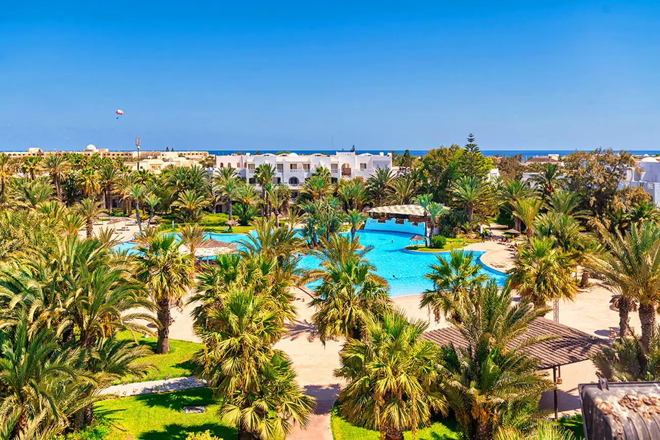 Bienvenue au Djerba Resort 4* ! Situé à quelques pas de la plage, au cœur de la zone touristique de Midoun, cet hôtel est l’adresse idéale pour des vacances ensoleillées sur la magnifique île de Djerba. Entouré de jardins luxuriants, il propose un cadre convivial et dépaysant, parfait pour se détendre en famille ou entre amis. Installez-vous dans l’une de ses chambres spacieuses à la décoration d’inspiration locale, profitez de la grande piscine lagon ou offrez-vous un moment de bien-être à l’espace Spa et bien-être avec hammam, soins et massages. Le restaurant propose une cuisine généreuse aux saveurs tunisiennes et internationales, et les nombreuses animations rythment vos journées et soirées. Entre détente, divertissement et hospitalité tunisienne, le Djerba Resort 4* vous promet un séjour chaleureux et inoubliable sous le soleil de la Méditerranée.
